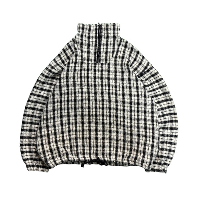 知る人ぞ知るブランドEARTH RAGZによる90年代のハーフジッププルオーバー。メキシカンパーカーのイメージのあるEARTH RAGZですが、実はグッドレギュラーの宝庫。 このアイテムはポリエステル・コットン・アクリル混紡の、毛羽立ちが温かみのある素材感が特徴。モノトーンの落ち着いたチェック柄は派手さを抑えつつ、着るだけで雰囲気が出る完成度の高いデザイン。 身幅はゆったりめで、ハーフジップとドローコードによりシルエットの調整が可能。アウトドアやストリート、カジュアルまで幅広く対応するデザイン。完全にグッドレギュラーです。 [表記サイズ] XL [実寸] 肩幅:67cm 袖丈:63.5cm 着丈:70cm 身幅:70cm ※多少のズレはご容赦ください。 [状態] B 参考 S...未使用品、デッドストック A...状態の良い美品 B...使用感はあるが、目立った傷や汚れなし C...目立つ傷や汚れあり D...難あり ※古着のため記載以外の細かな擦れや汚れがある場合があります。