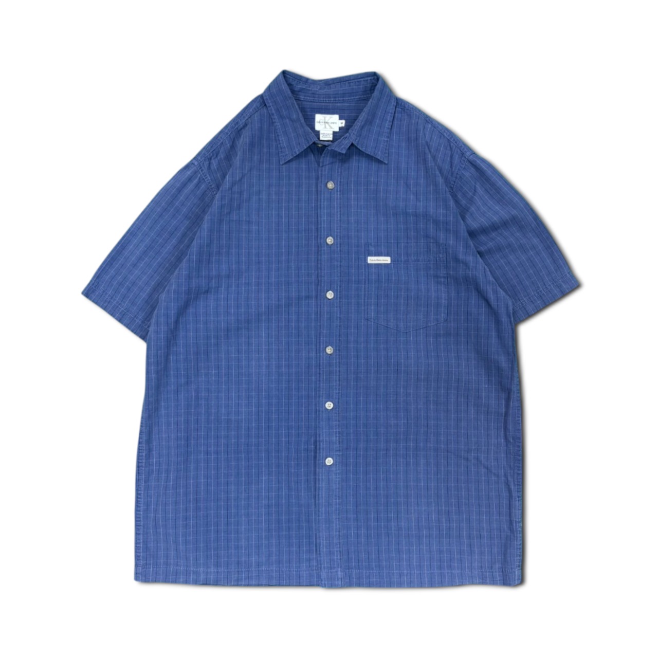 90s~ Calvin Klein "blue plaid pattern short sleeve shirt"