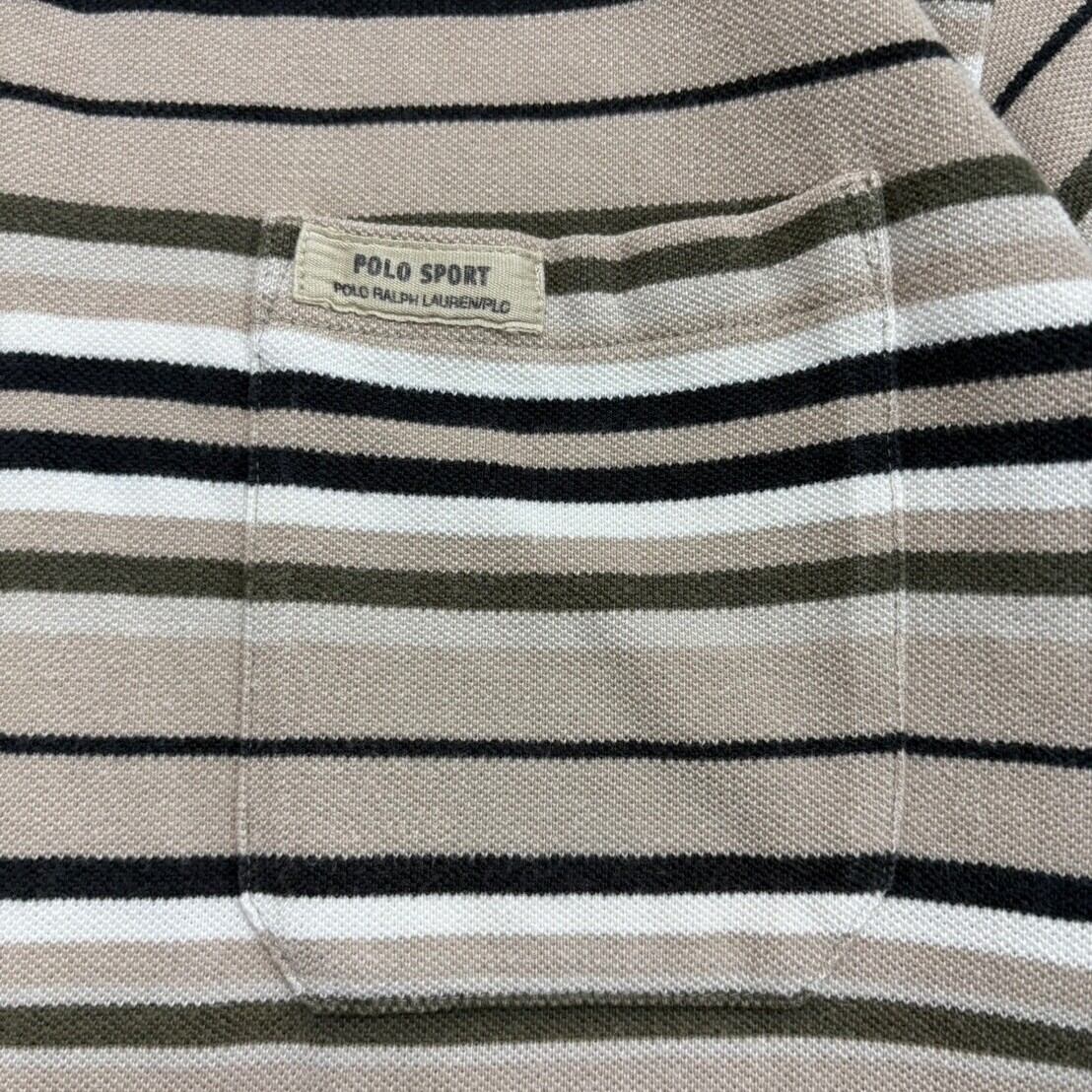 ポロスポと聞いて思い浮かべる、あの象徴的な赤・青・白の配色とはまた違う、ちょっとひねりの効いた一枚。ベージュを軸にしたマルチボーダーは、ラルフが描く“アメリカンスポーツ×ストリート”の文脈の中でも珍しいアプローチ。