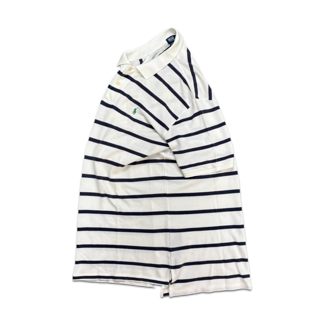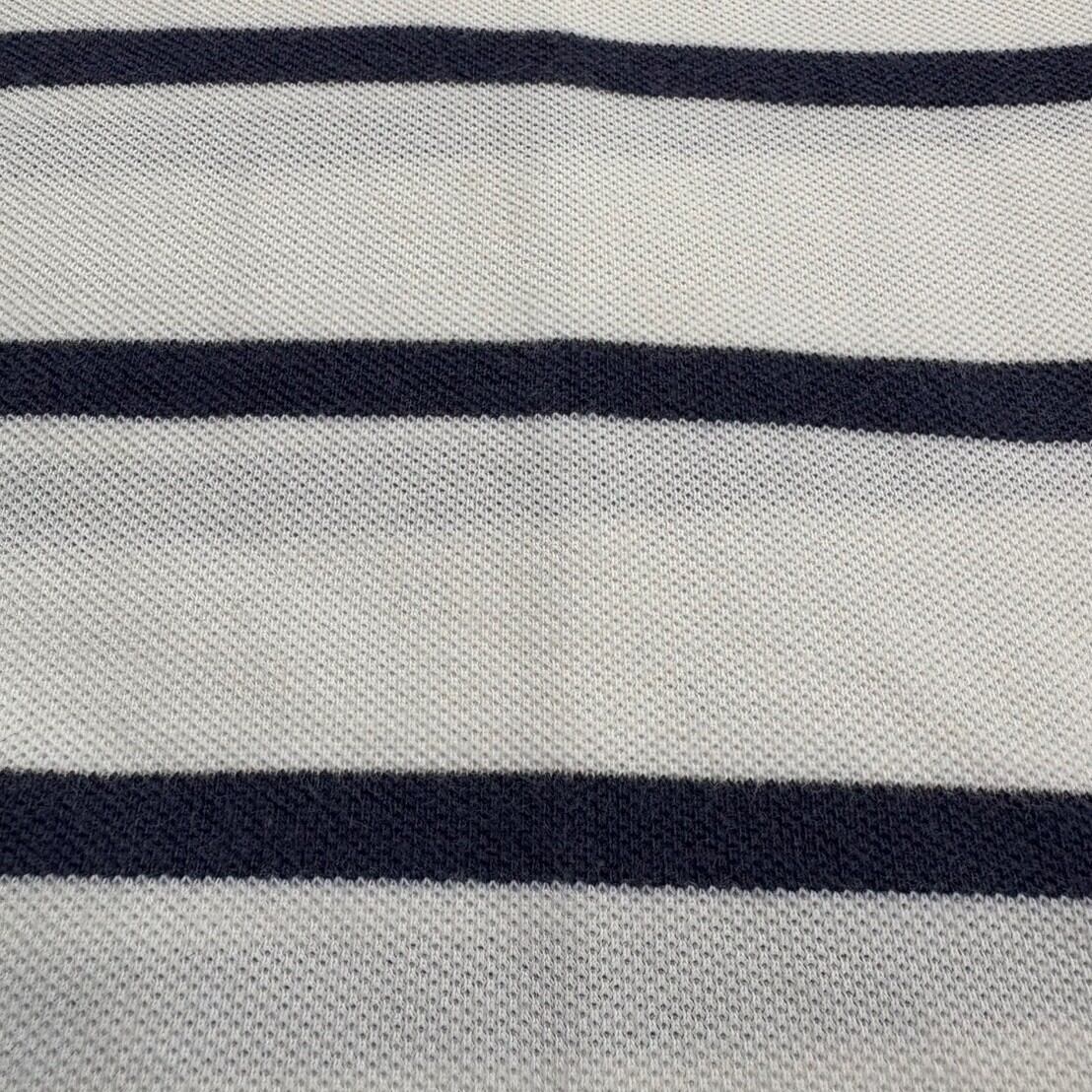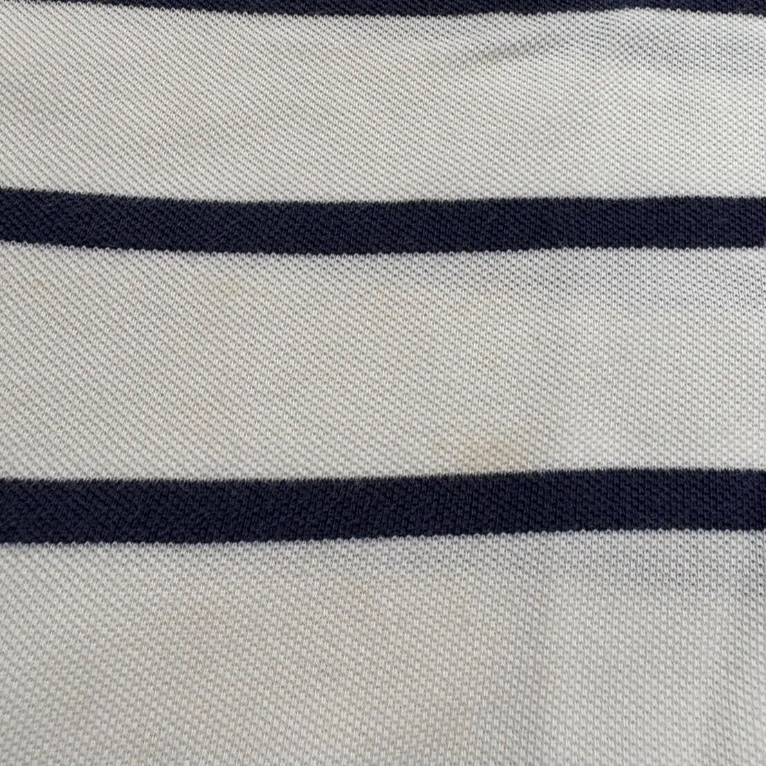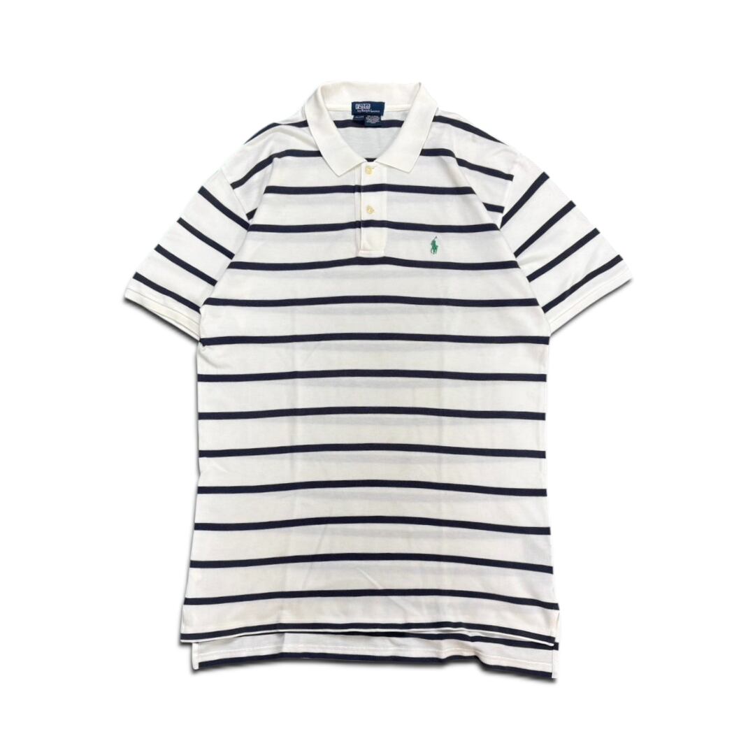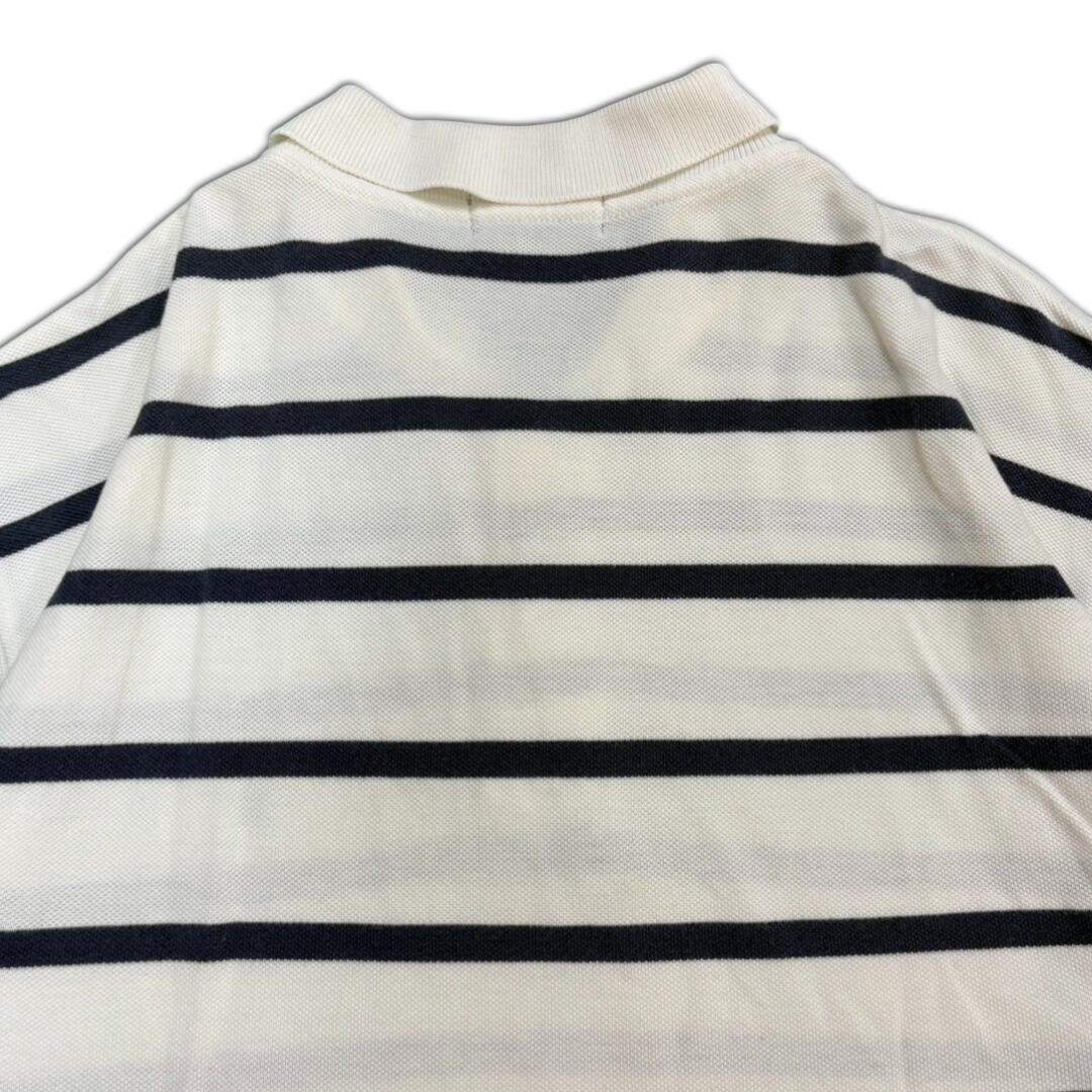白をベースに、細めの黒ボーダーが走る、ミニマルで洗練された印象のポロシャツ。柄自体は控えめながら、ラルフローレンの上品なムードはしっかり健在。どんなアイテムにも自然と馴染みつつ、さりげない存在感を発揮してくれる一枚です。