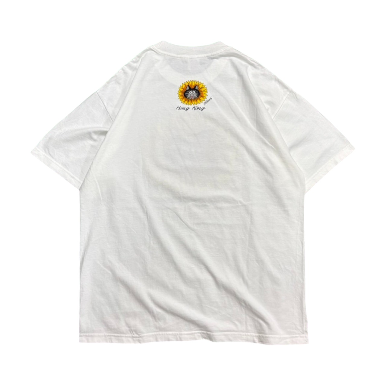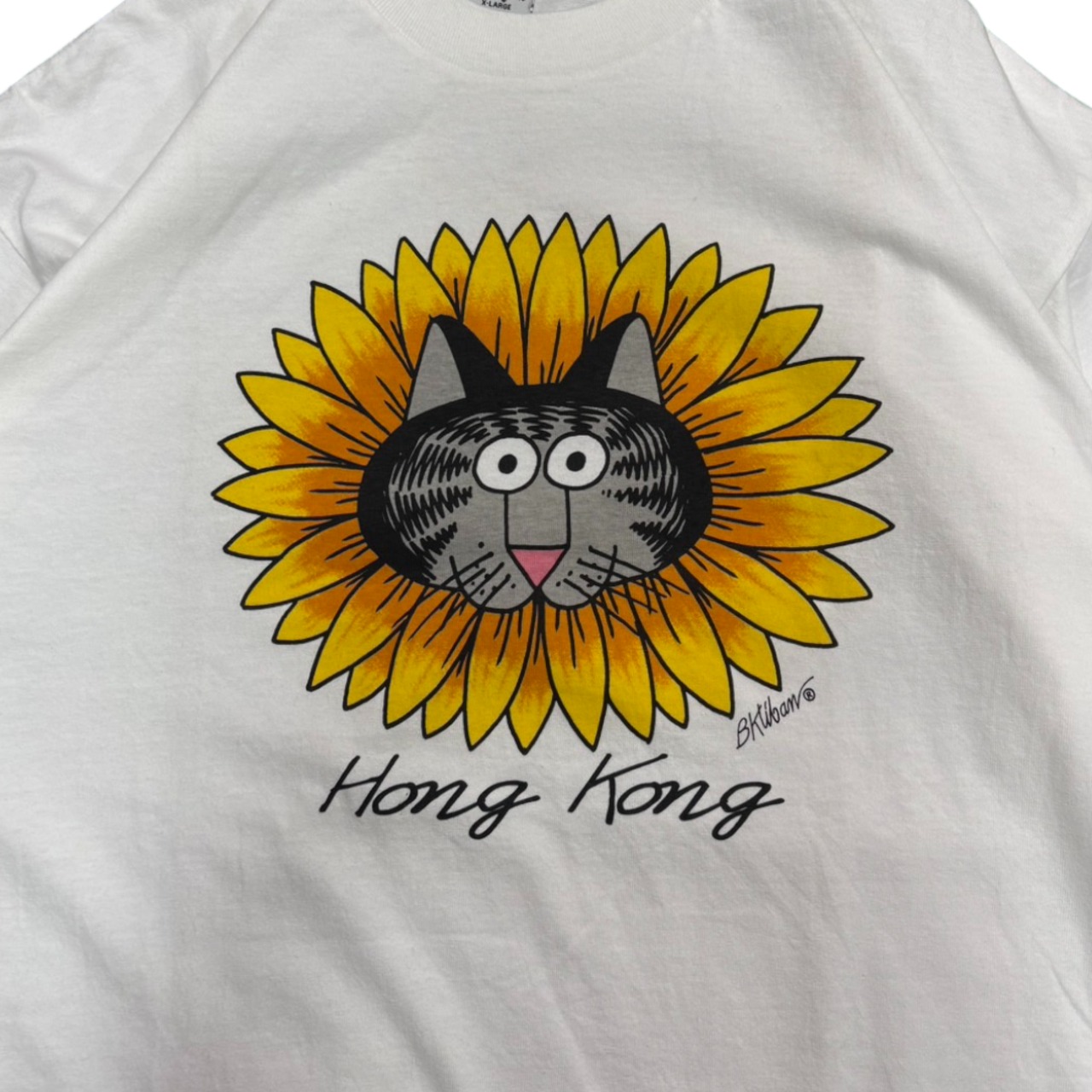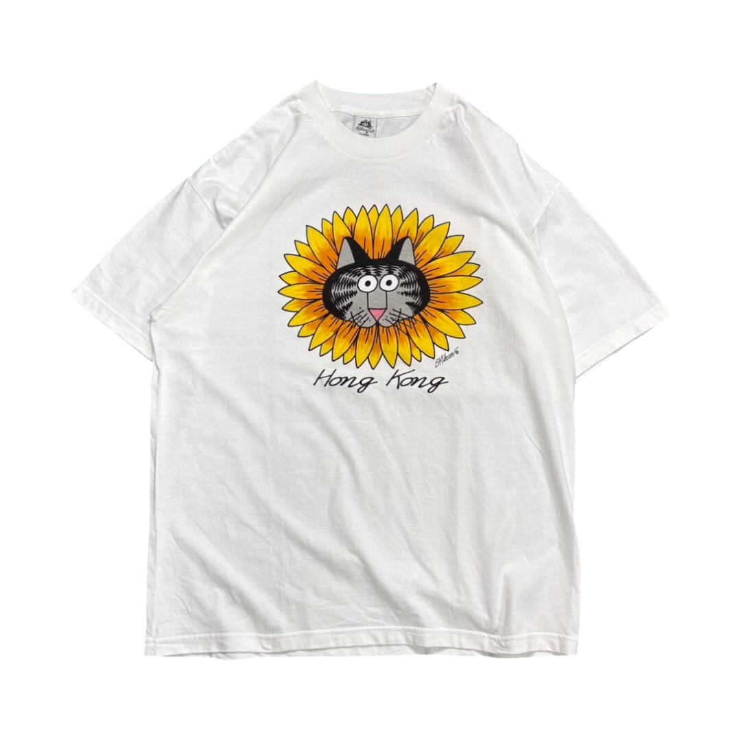 1970年代に誕生し、長年にわたって愛されてきたKliban Cat。だけどこのTシャツは、そんな“よく見るクリバンキャット”とはひと味違う。どこかシュールで、妙に可愛い。ひまわりの花の中から、キャットの顔が覗いているという、なんともかわいいデザインです。