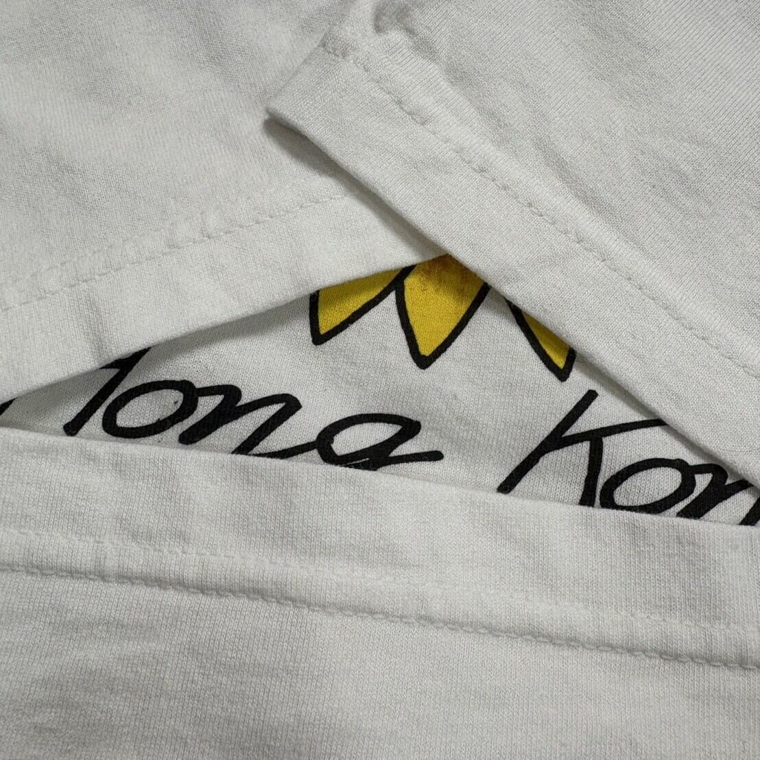Tシャツとしての完成度も高く、アメリカ製のボディは程よく厚みがあり、広めの身幅がいまのゆったりシルエットの気分ともマッチします。HONG KONGの文字が入っていて、旅土産的な文脈も想像させる1枚。