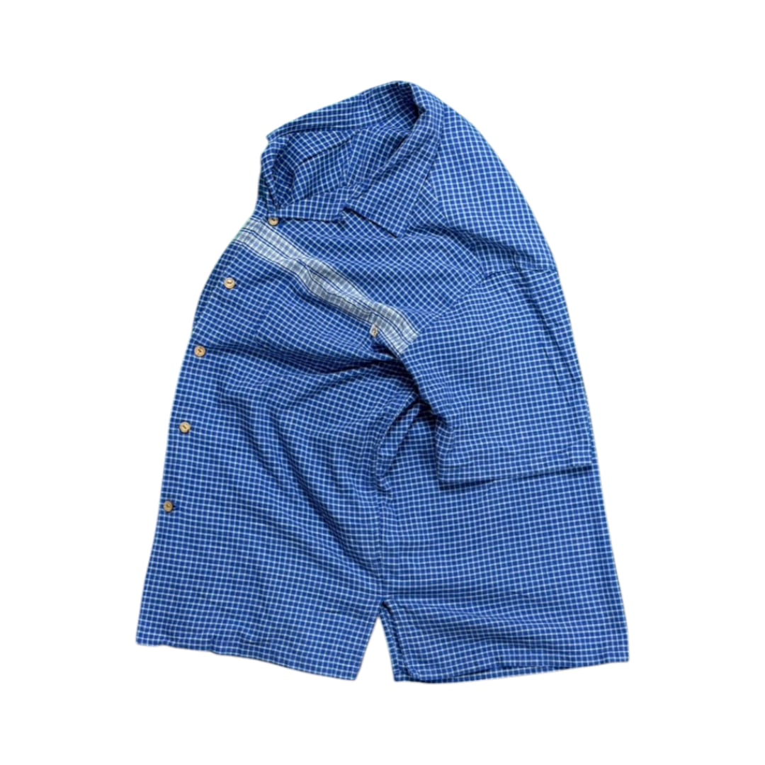 クリーンでさわやかな青ベースのチェックが夏らしい一枚。
