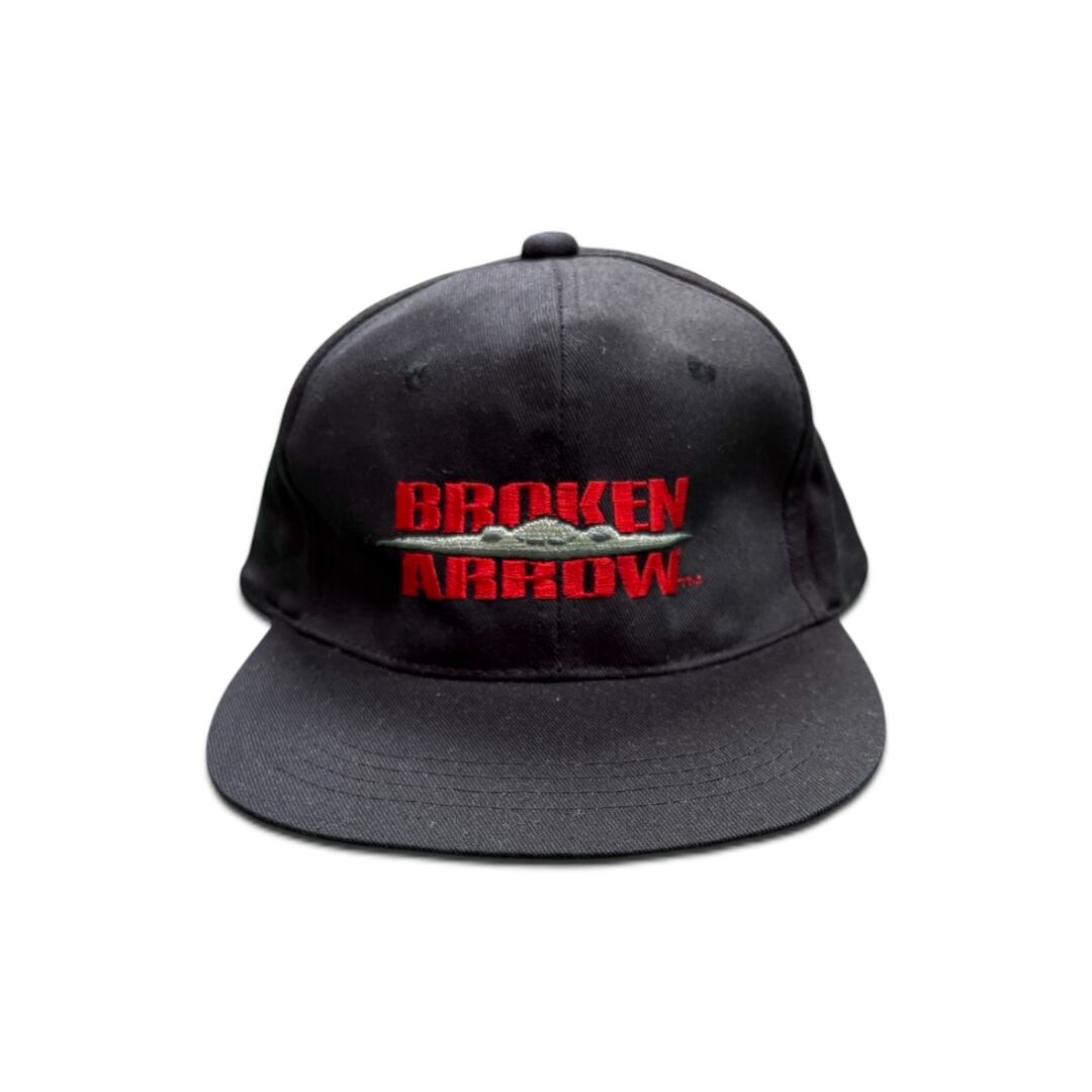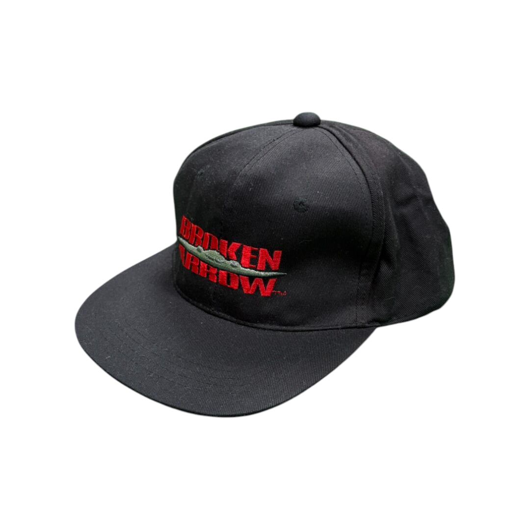 90年代公開の映画『BROKEN ARROW』のプロモーションキャップ。黒をベースに、フロントにロゴ刺繍が入るシンプルながら存在感のある仕上がりです。無駄のないデザインだからこそ、映画グッズとしてのレアリティや90sカルチャーの空気感がストレートに伝わります。