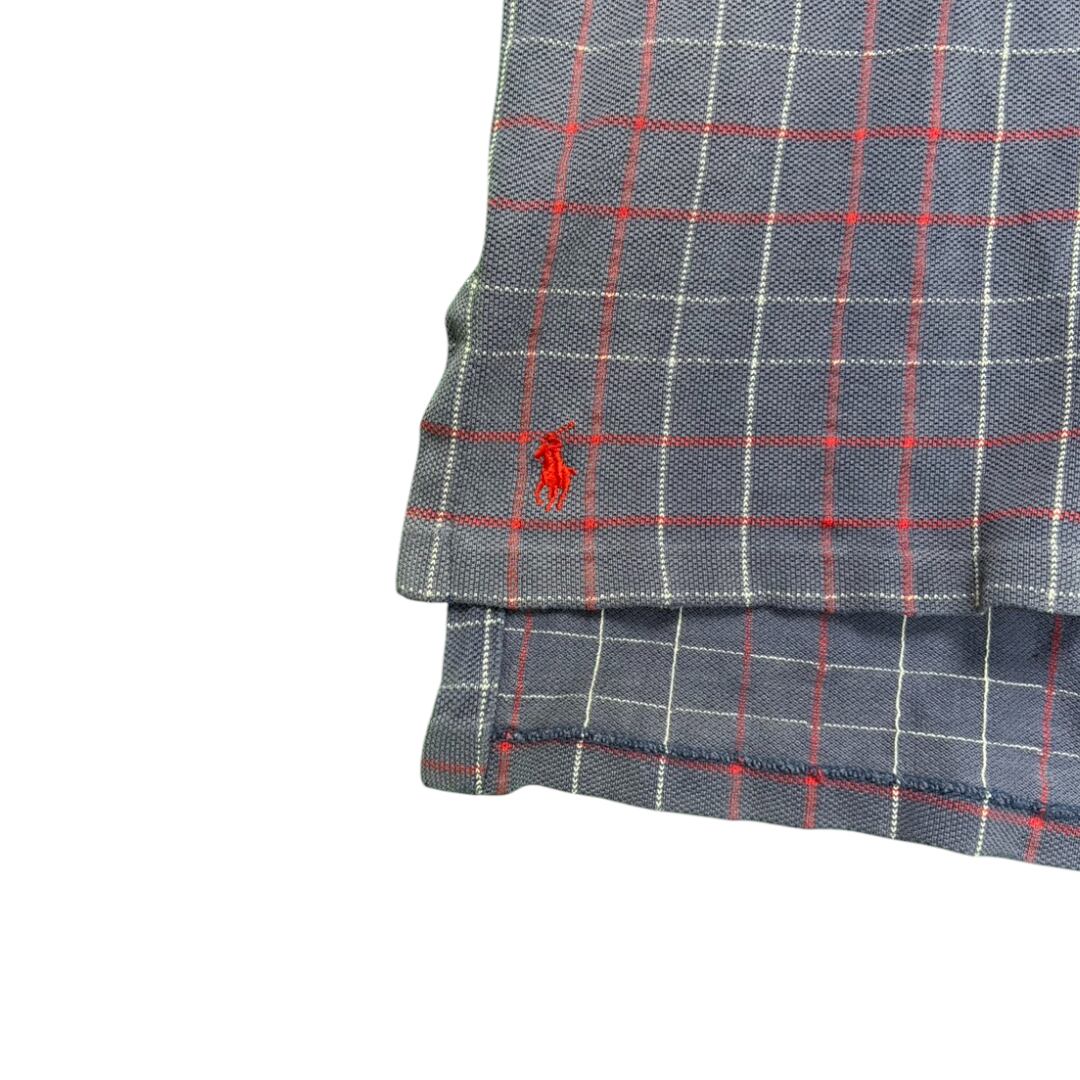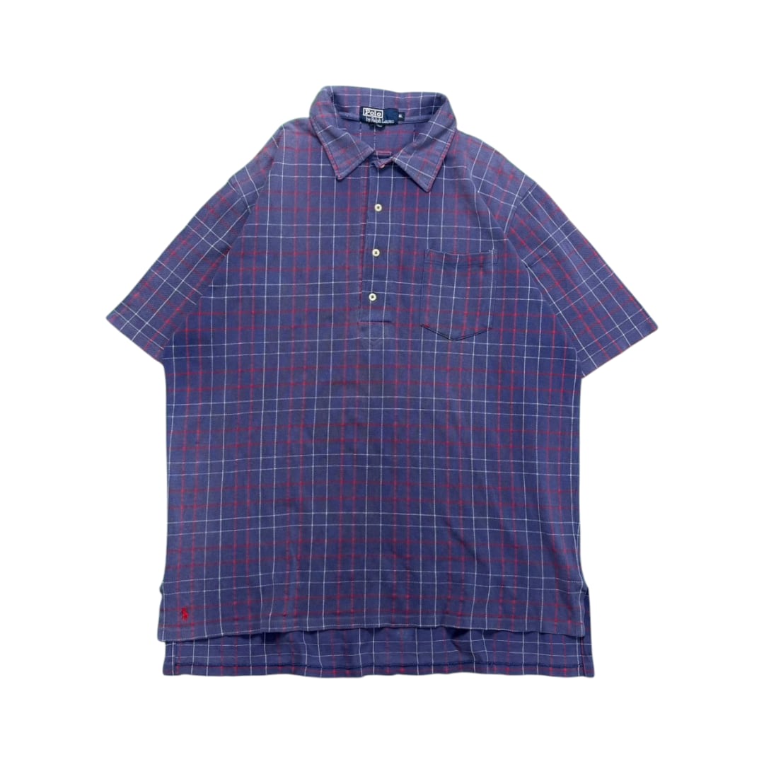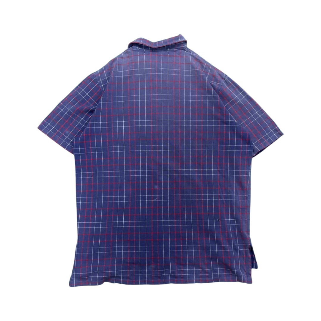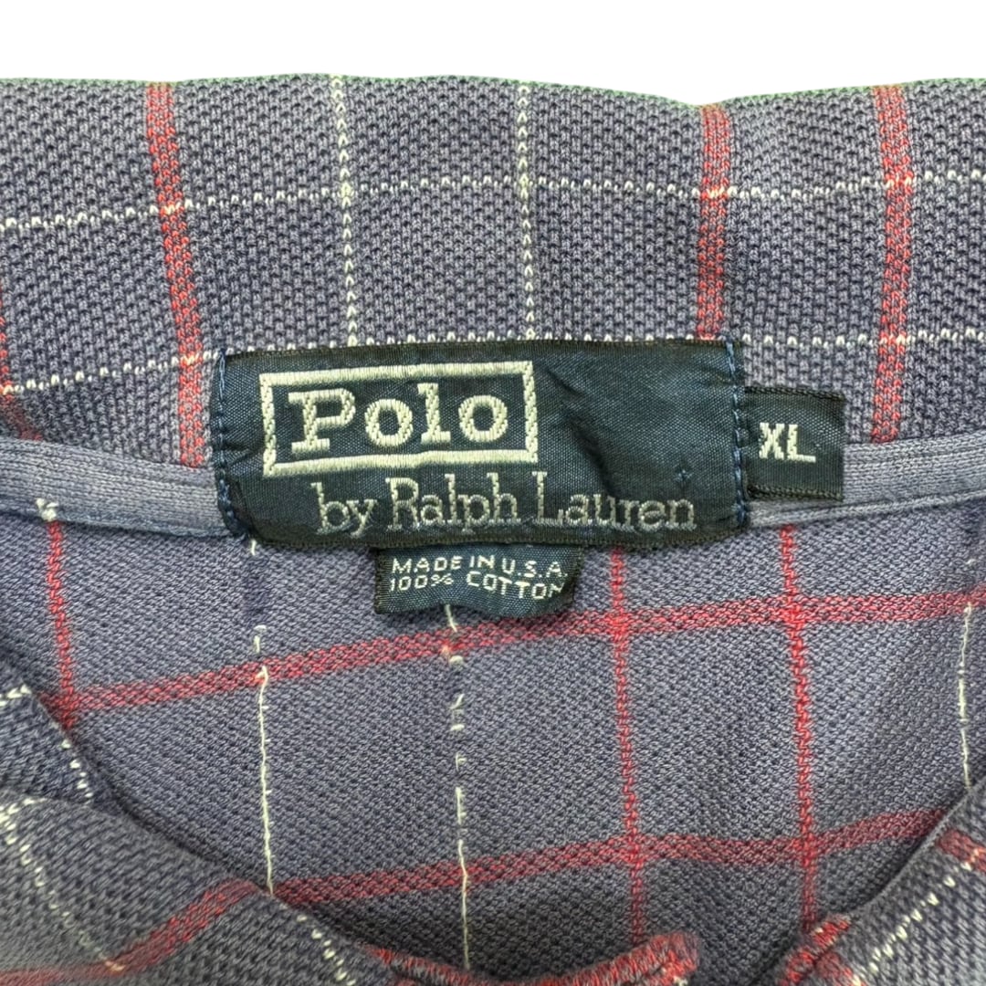 90年代、Polo by Ralph Laurenのチェック柄ポロシャツ。深みのあるパープルをベースに、赤と白のチェックが組み合わさった上品な配色。派手さはなく落ち着いた雰囲気ながら、ラルフらしい存在感をしっかりと放つ一枚です。