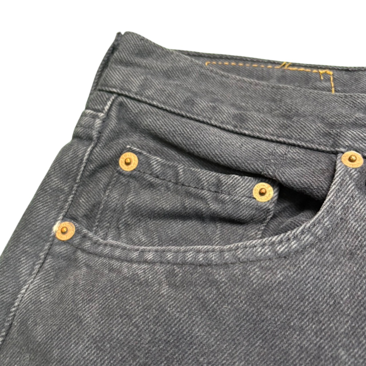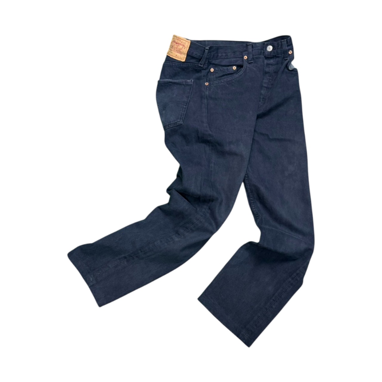 王道の501をベースにしつつも、希少なカラーリングで差別化できる一本。古着市場でもなかなか出会えないフランス製ダークネイビーは、スタイリングの幅を一気に広げてくれるはずです。