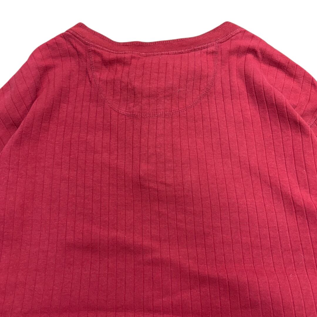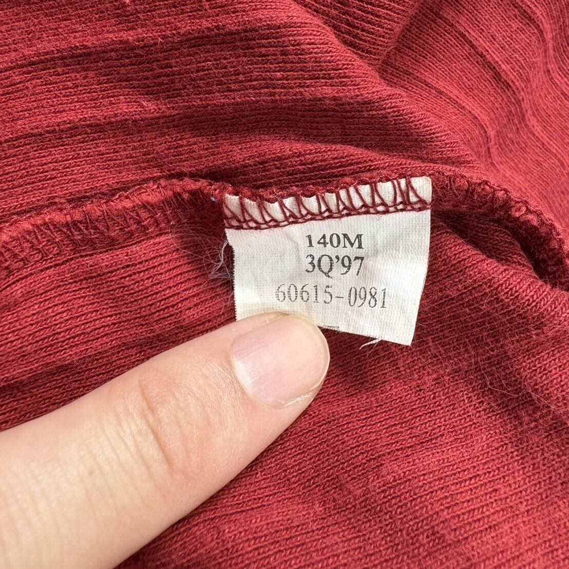 90年代リーバイスから、深みのあるレッドカラーが印象的なヘンリーネックのリブロンT。アメリカ製ならではのタフな生地感とシンプルな作りが魅力で、当時のカジュアルウェアらしい武骨さと安心感を備えています。リブ仕様のため着心地は柔らかく、程よいフィット感が出るのも特徴。
