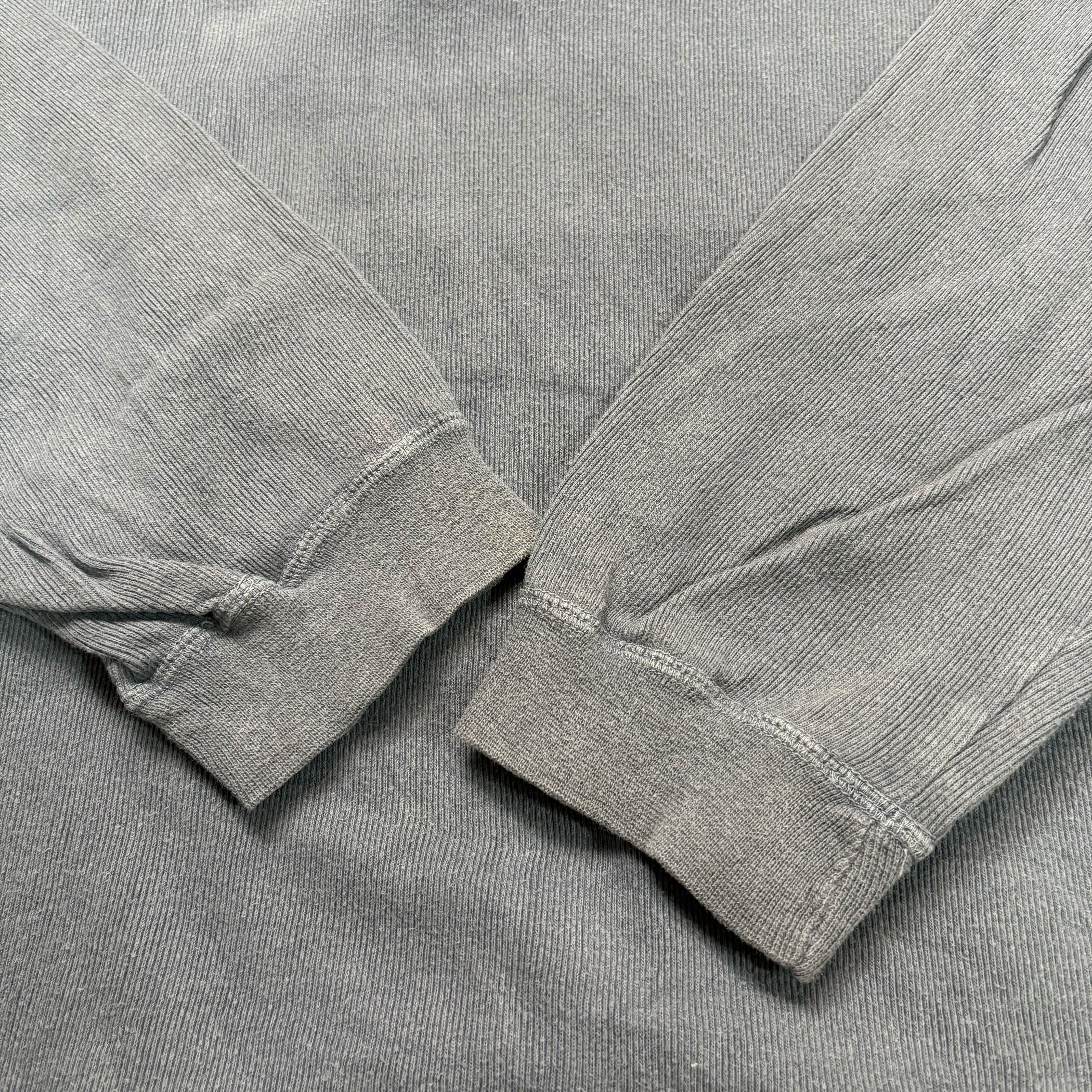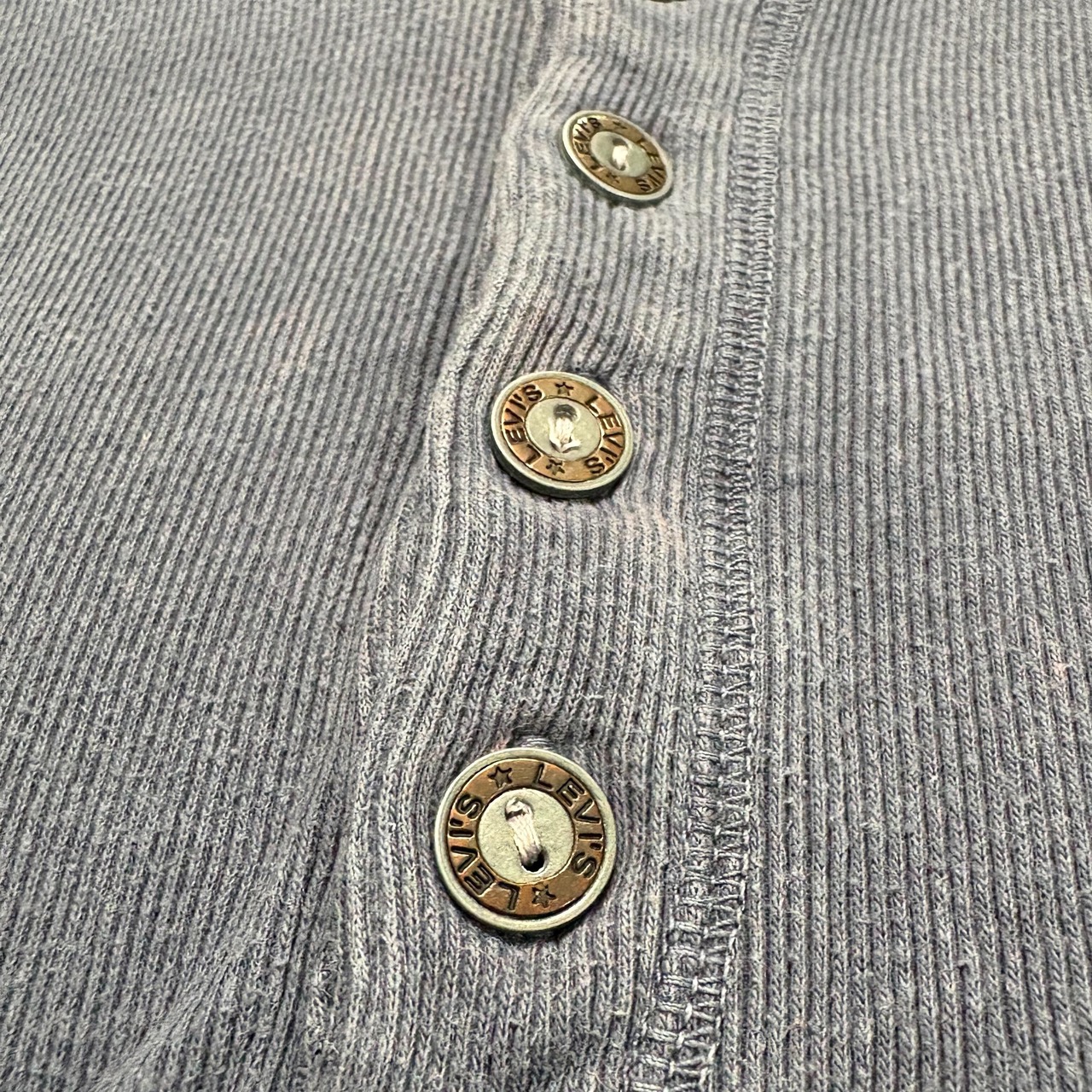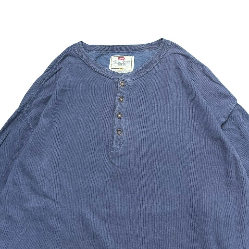 くすんだブルーの色味が特徴的なロングスリーブのヘンリーネック。身幅が広めにとられたボックス寄りのシルエットで、ゆったりとした空気感を演出してくれる一枚です。リーバイスらしい無骨さの中に、古着特有の味わい深さがしっかりと感じられるのも魅力。