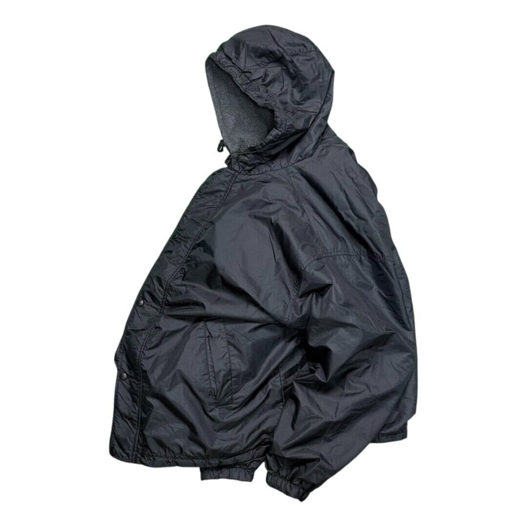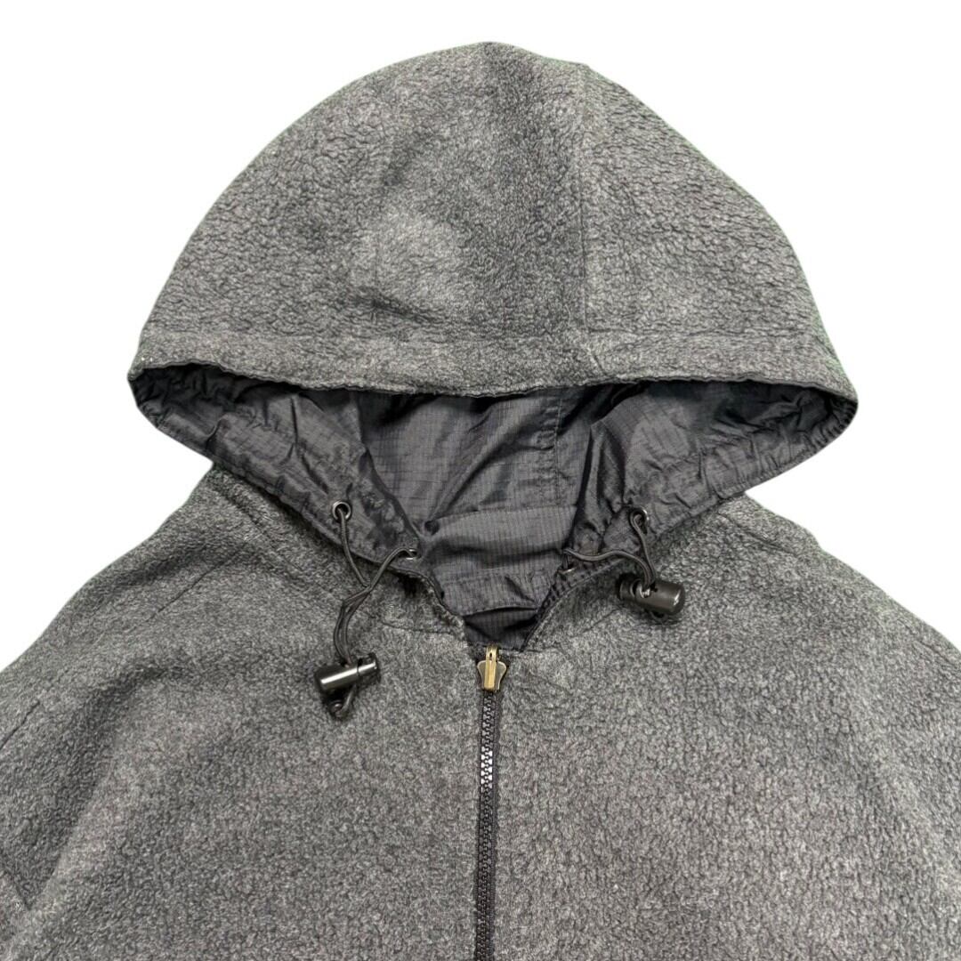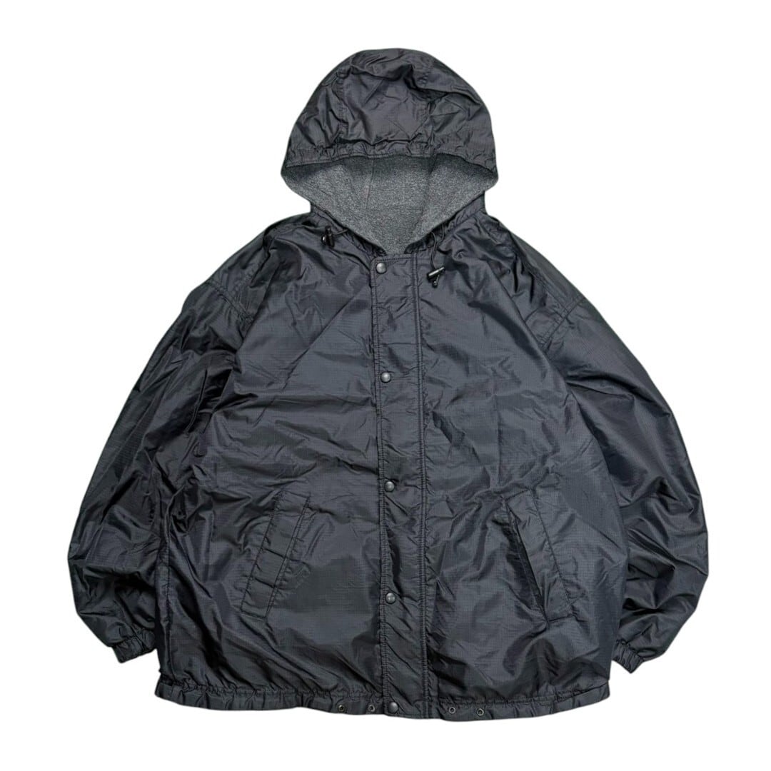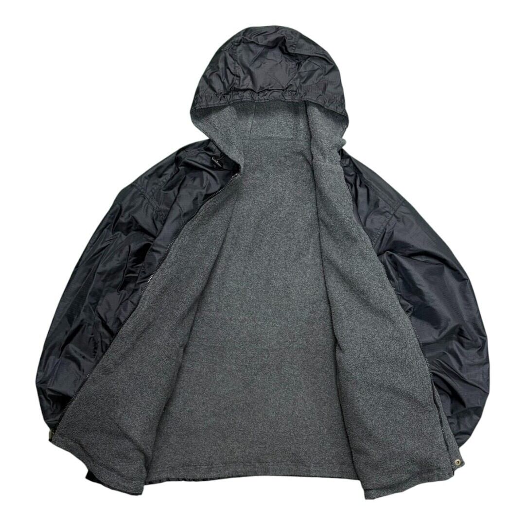 ナイロン面はシャリっとした質感で、アウトドアやスポーティーなスタイルにフィット。フリース面は柔らかく保温性があり、カジュアルな着こなしにぴったり。フードにはドローコードが付き、実用面でも抜かりがありません。サイズ感は90sらしいゆとりがあり、スウェットやニットの上からざっくり羽織ってもサマになります。