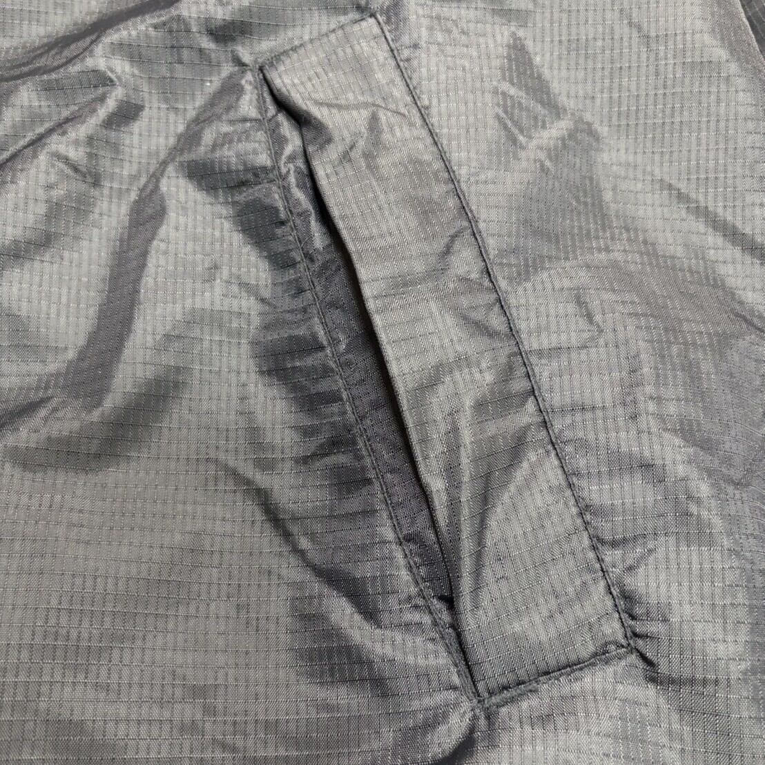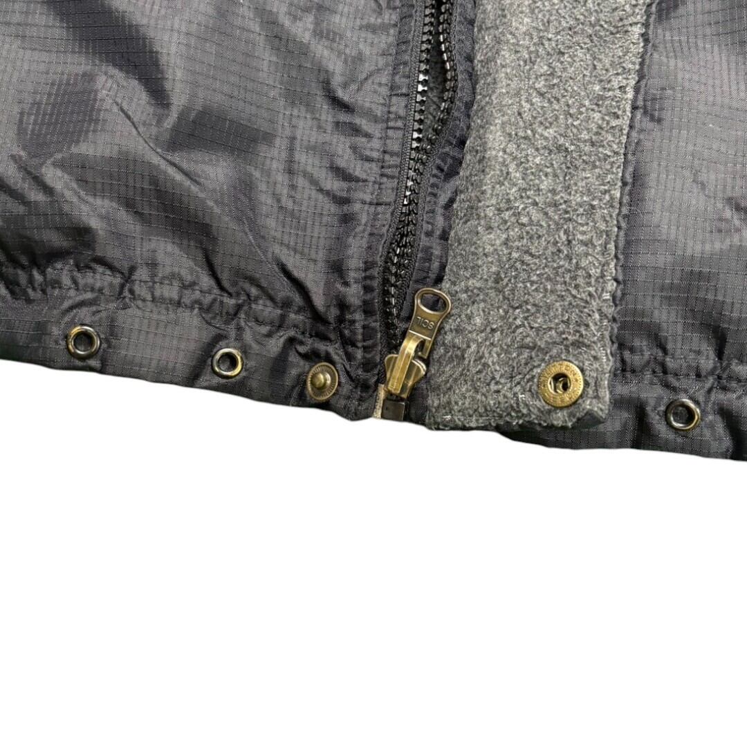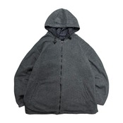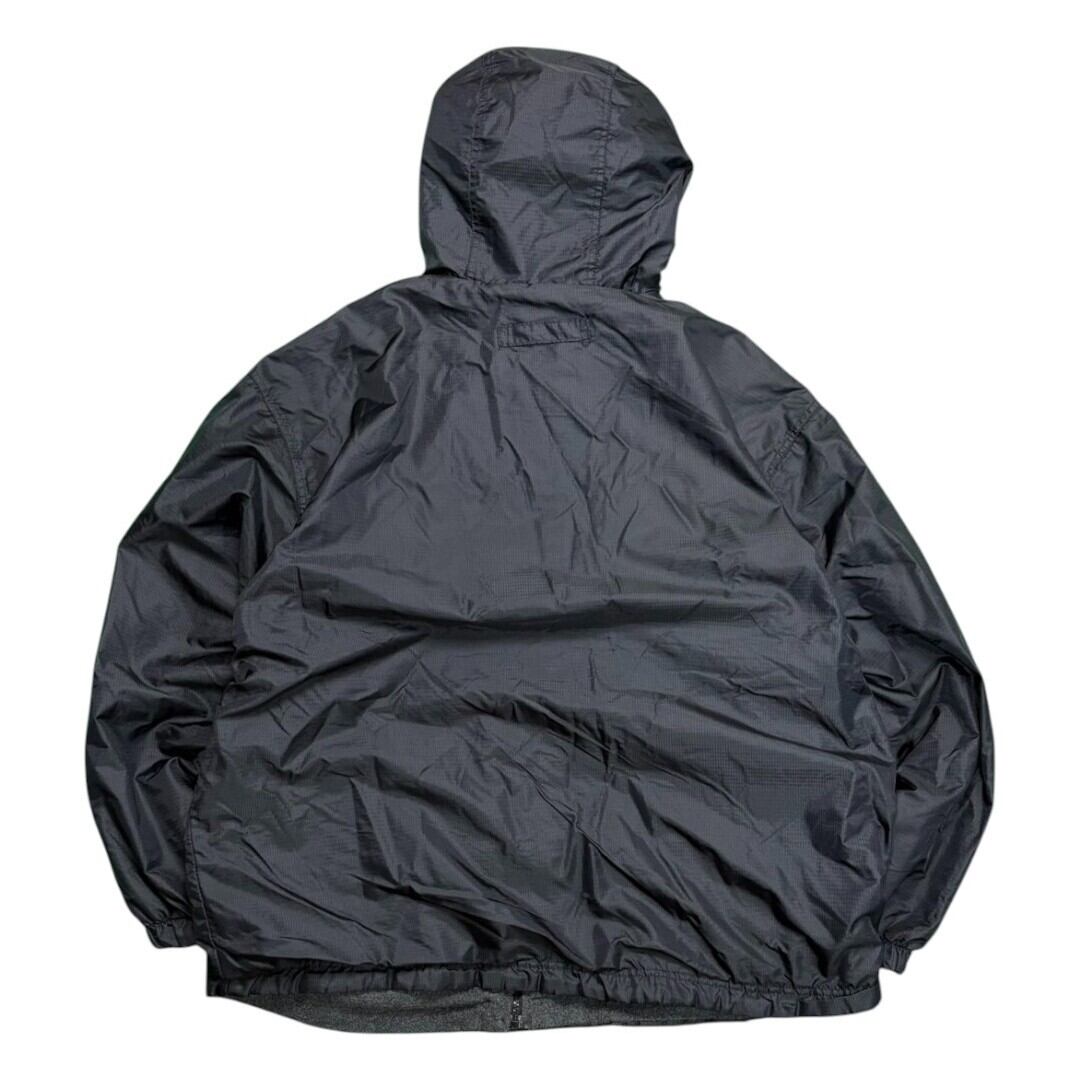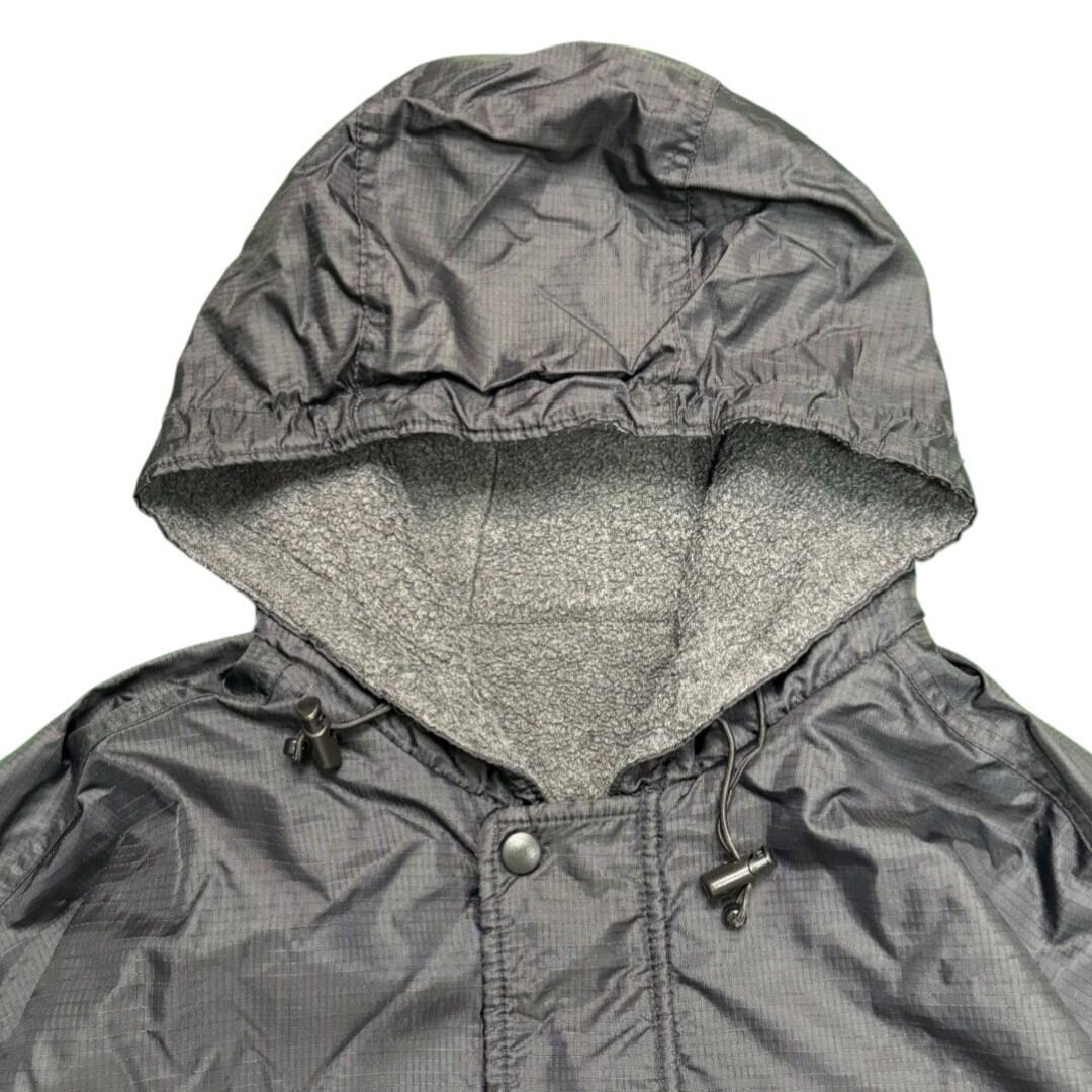 ナイロン面はシャリっとした質感で、アウトドアやスポーティーなスタイルにフィット。フリース面は柔らかく保温性があり、カジュアルな着こなしにぴったり。フードにはドローコードが付き、実用面でも抜かりがありません。サイズ感は90sらしいゆとりがあり、スウェットやニットの上からざっくり羽織ってもサマになります。