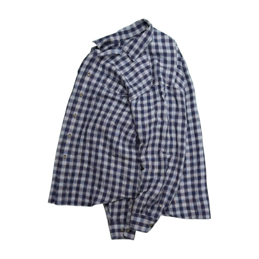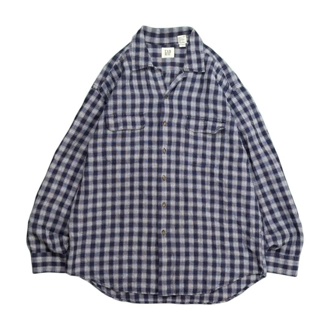 90年代のGAPから登場したオープンカラーのチェック柄シャツ。生地はラミー×レーヨンの混紡で、軽やかな落ち感と独特の風合いが魅力です。本格的なヴィンテージのオープンカラーは価格が高騰していますが、オールドGAPなら手の届きやすい上に、サイズ感やシルエットも今の気分にぴったり。チェック柄もクセがなく、コテコテしすぎないので、デニムやチノはもちろん、スラックスに合わせても自然に馴染みます。アメカジに振っても良し、クラシックな着こなしに差し込んでも良し、ヴィンテージスタイルに溶け込ませても良しの万能な一枚です。