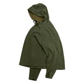 フロントのハーフジップ仕様は、開け閉めで表情を変えられるのが魅力。デニムやチノと合わせた王道カジュアルはもちろん、ショーツやワイドパンツと組み合わせれば今っぽく都会的なラフさも演出できます。フードやネック周りの立体感がアクセントとなり、シンプルながらも着こなしを引き立てる一着です。