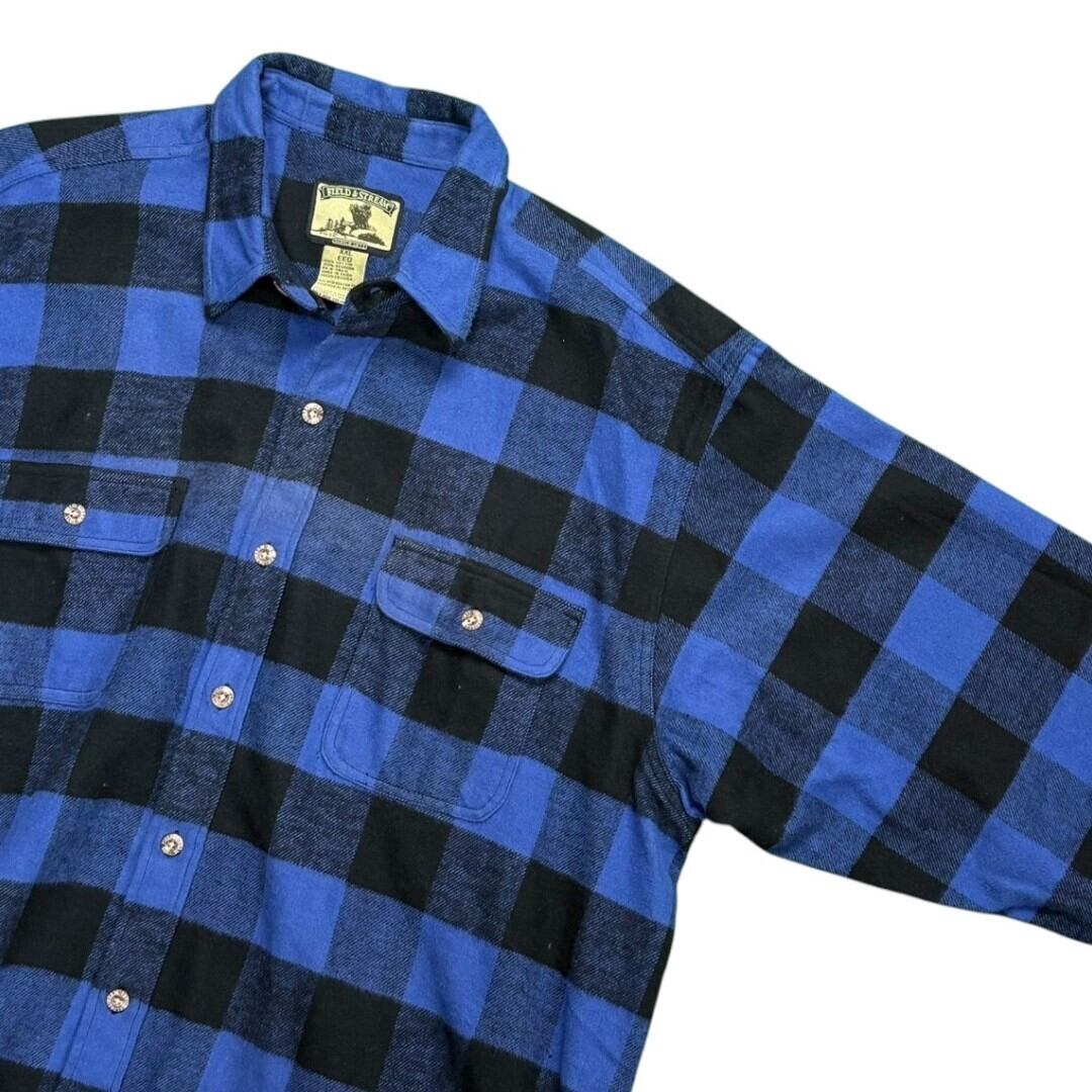 アメリカの老舗アウトドアブランド FIELD & STREAM から、2000年代のブロックチェックフランネルシャツ。ブルーを基調としたチェック柄が爽やかさと男らしさを兼ね備え、シンプルながら存在感のある一枚です。