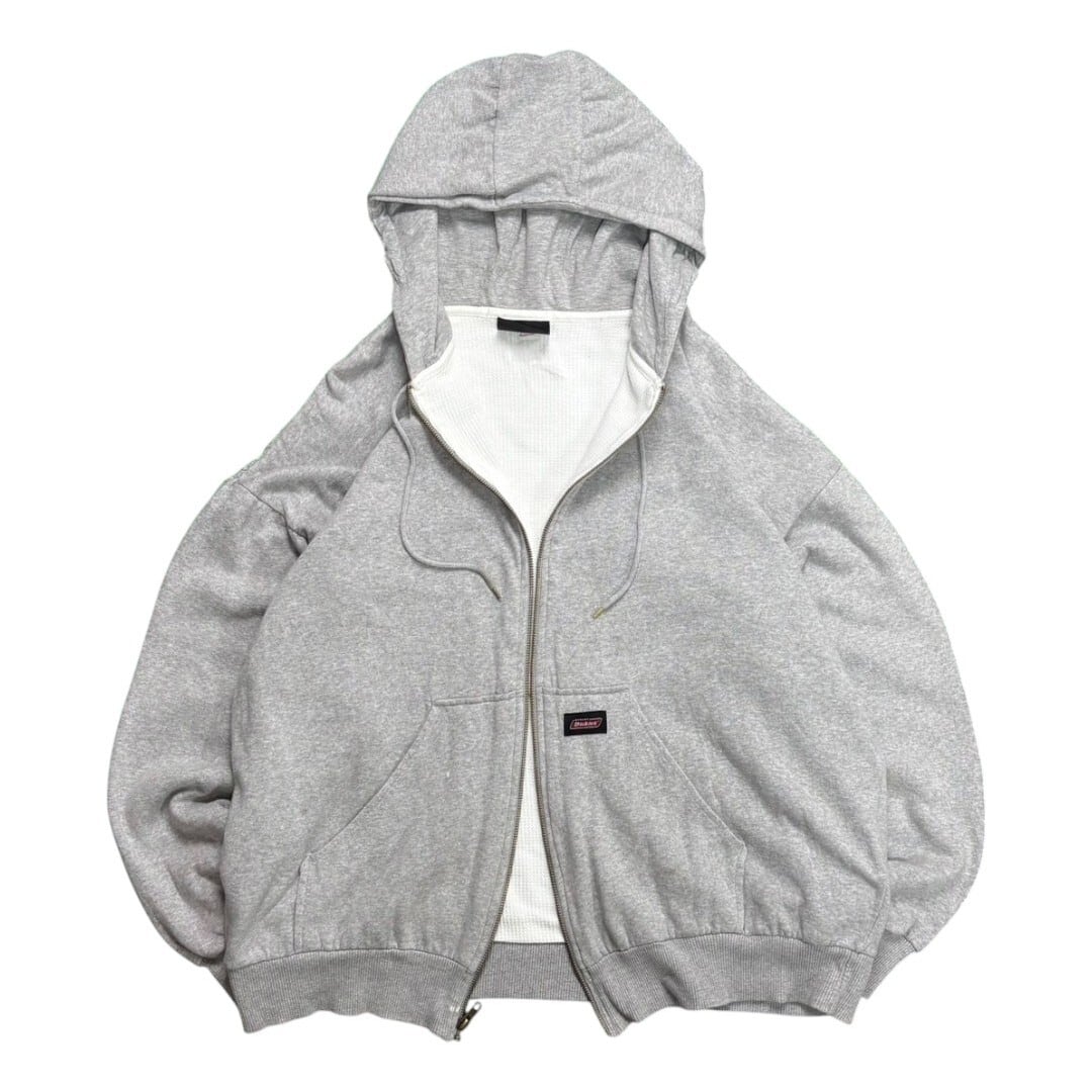 「Dickiesのジップアップ」というだけでも少し粋で、ワークウェアの無骨さをデイリーに落とし込んだ一枚。古着らしいサイズ感と使いやすさを兼ね備えた万能アイテムです。ジップアップパーカーはお探しの方の多いアイテムです。お早めに。