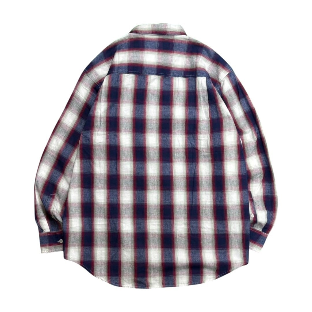 Y2Kらしい軽やかさと空気感が漂うオンブレチェックシャツ。薄手の生地は柔らかく、プリントTシャツの上に羽織るだけで、抜け感のあるレイヤードスタイルを作れます。DEADSTOCKならではの未使用状態で、鮮やかな色味やチェックのグラデーションがくっきりと残っているのもポイントです。