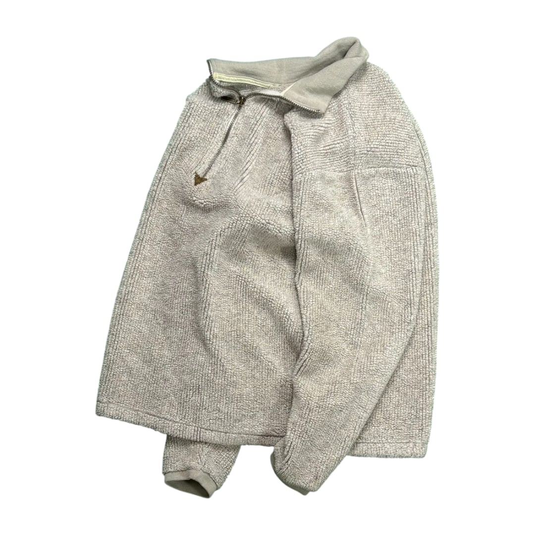 90年代、USA製のL.L.Beanによるハーフジップフリースジャケット。L.L.Beanといえば鮮やかなカラーや総柄フリースの印象が強い中で、こちらは珍しく落ち着いたトーンの一枚。派手さを抑えた温かみのあるカラーリングが、ブランドらしいアウトドア感を保ちながらも、日常使いにちょうどいいバランスです。