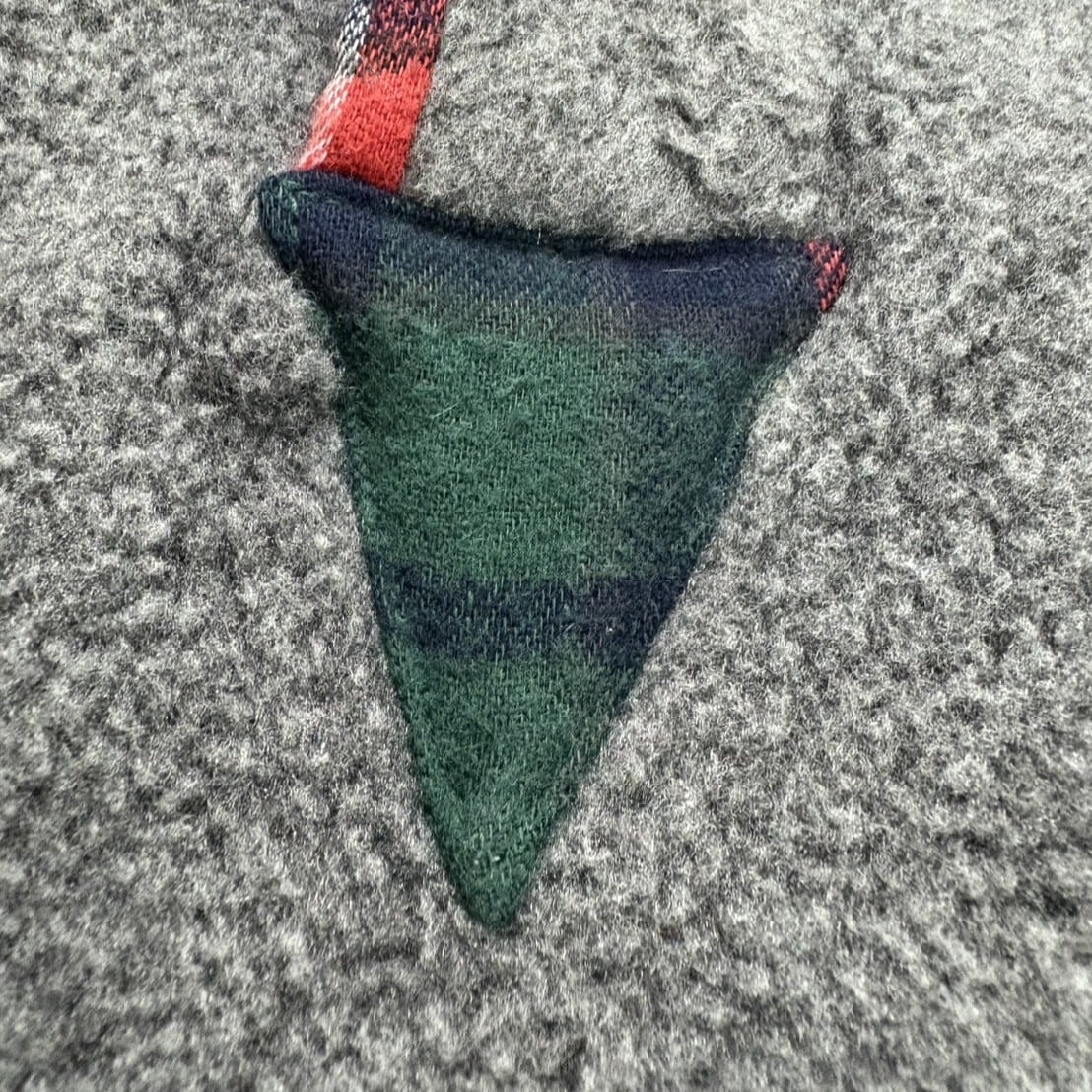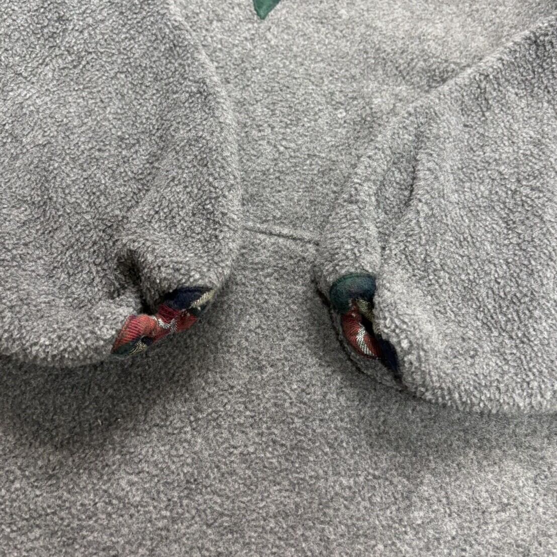 ボディはふっくらとしたミディアムグレーのフリース。肌触りがとても柔らかく、当時のアメリカ製ならではの素朴な質感が魅力。裏地にはチェック柄があしらわれており、見えない部分にもL.L.Beanらしい温かみのデザインセンスを感じます。フードを軽く抜いた時にチラッと覗くチェックがとてもいい。