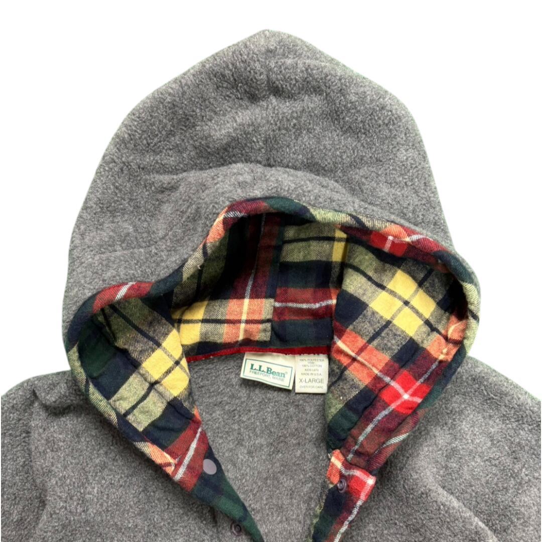 アメリカ製のL.L.Beanらしい確かな作りと、グレー×チェックの上品な配色がたまらない一枚。年代やトレンドを超えて、長く愛用できるフリースフーディです。