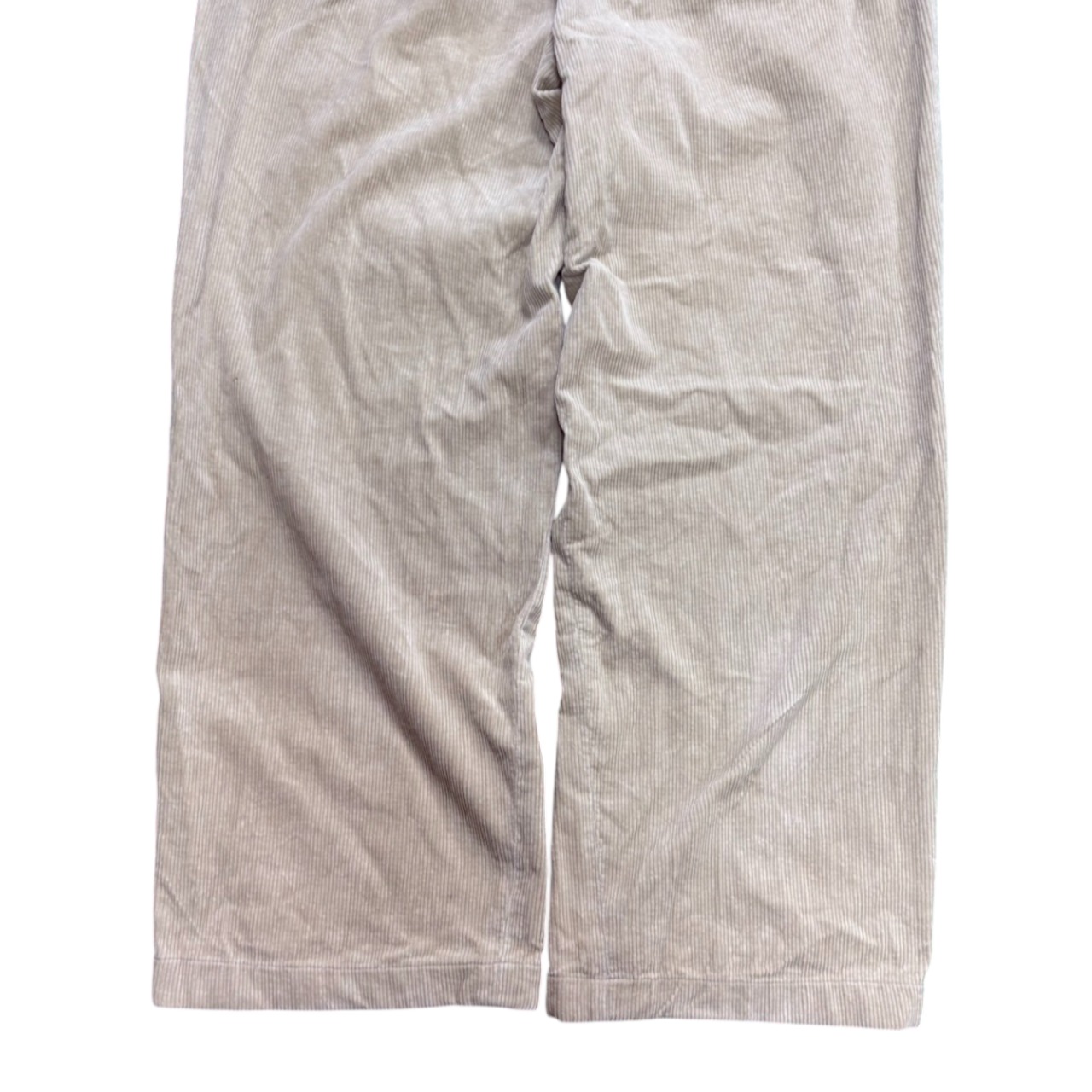 ウエストはW33、レングスはL32で、リラックス感のある穿き心地。チノやデニムとは違った表情を持つコーデュロイの質感が、古着らしいこなれ感を演出します。トップスにはニットやスウェット、シャツとのレイヤードも自然に決まり、カジュアルにも少し上品めにも振れる万能な一本です。