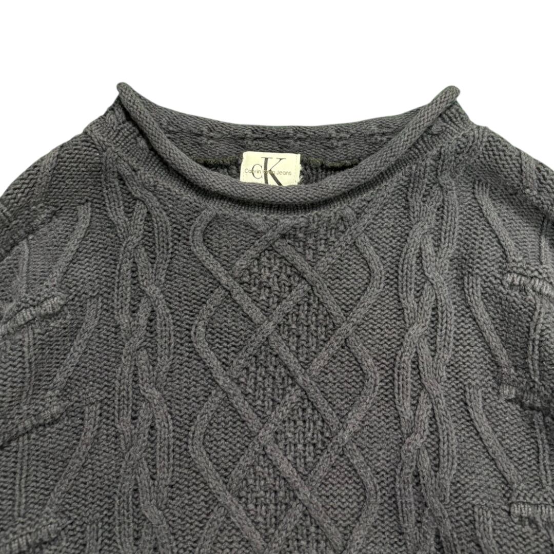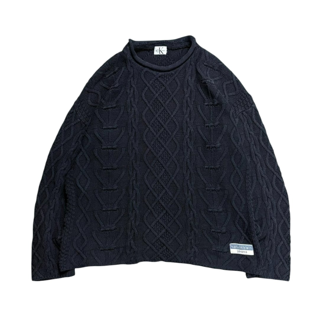 90年代の "Calvin Klein" によるモックネックのケーブル編みニット。