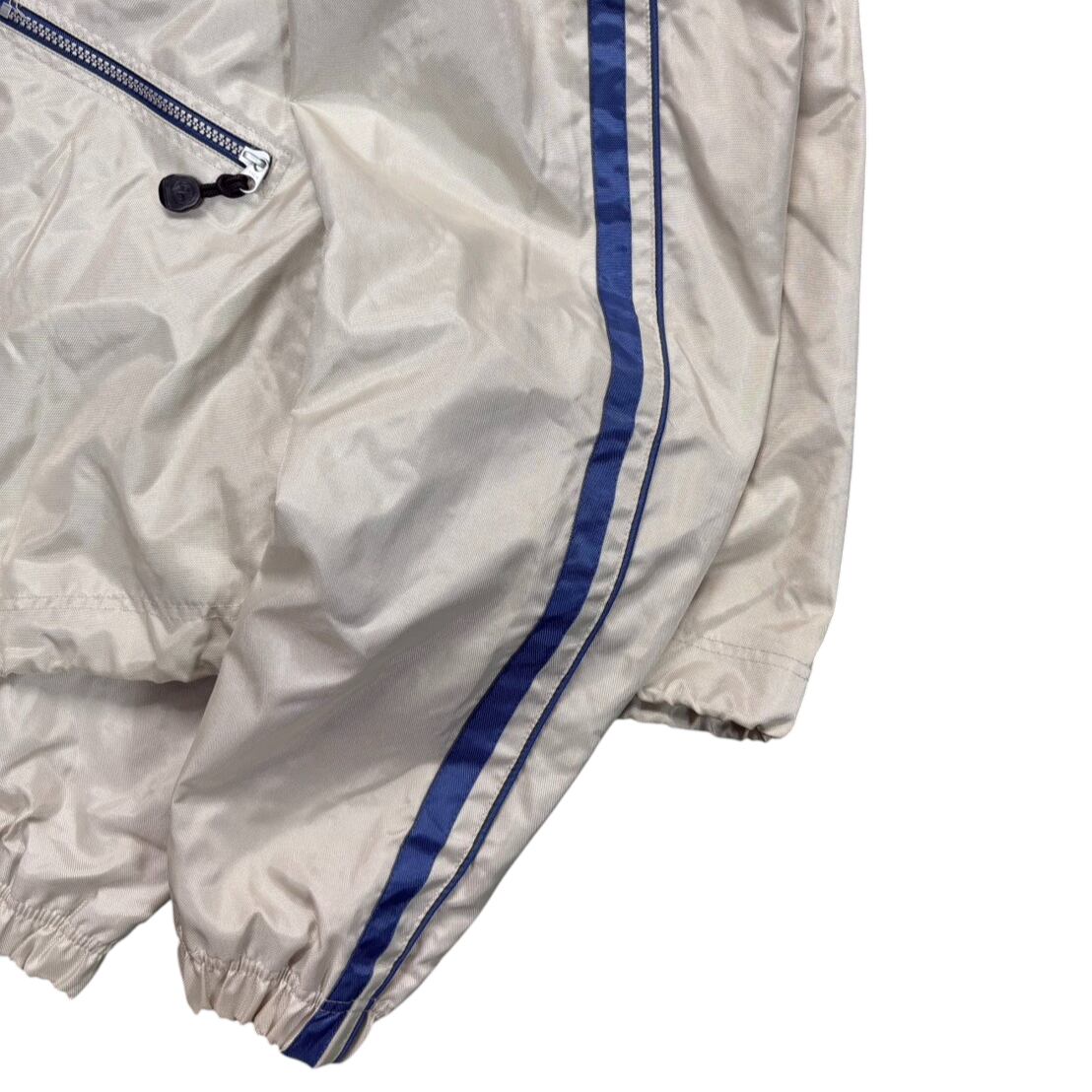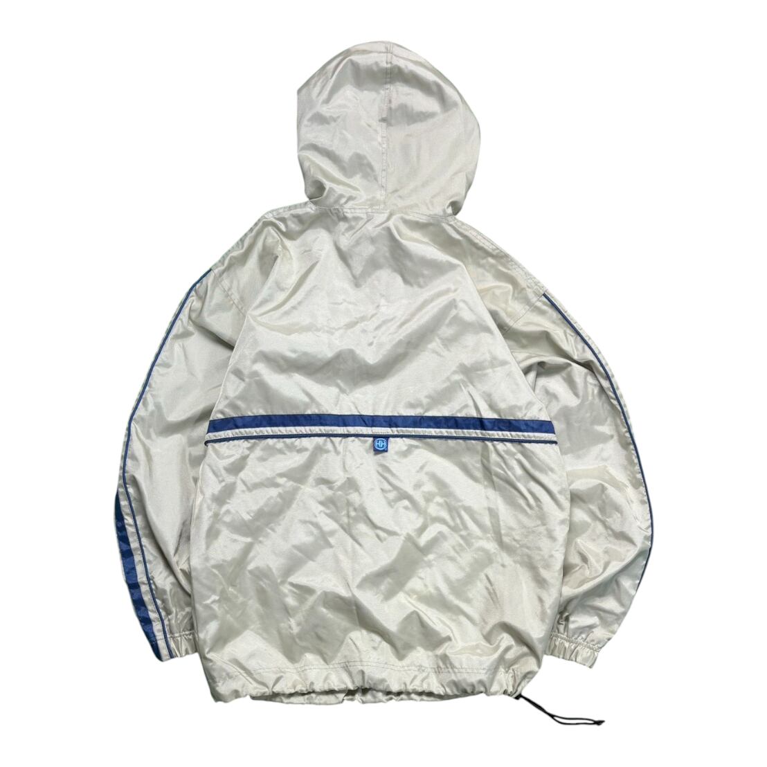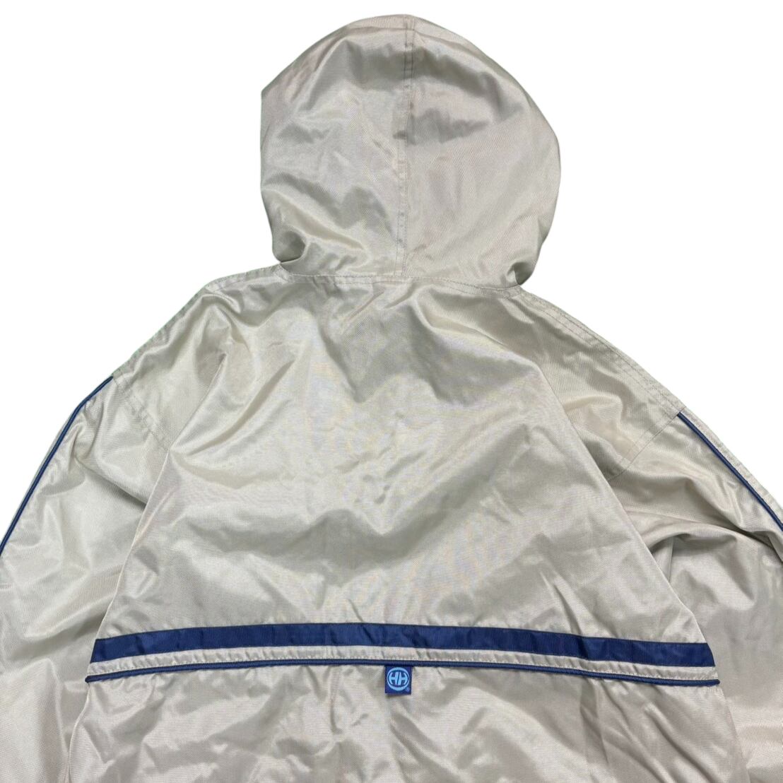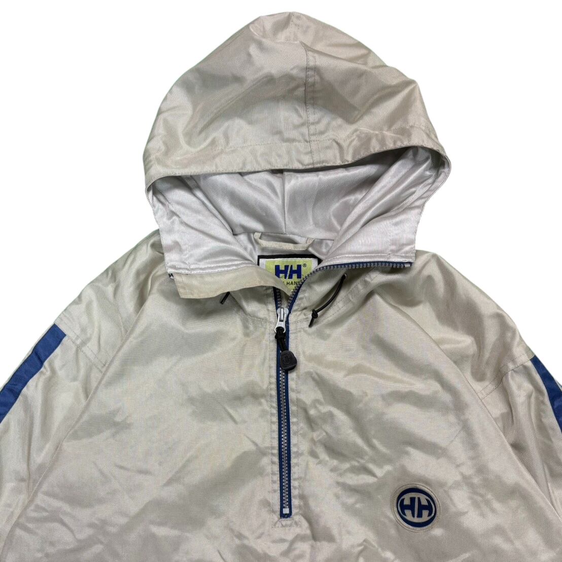 2000年代の「HELLY HANSEN」によるアノラックフーディ。爽やかなホワイトボディに、鮮やかなブルーのロゴやジッパーが映えるデザインで、カラーリングのセンスが光る一着です。アウトドアブランドらしい素材感と、表記サイズに対して程よくゆとりのあるシルエットで、いなたさと都会的な雰囲気を絶妙に両立。