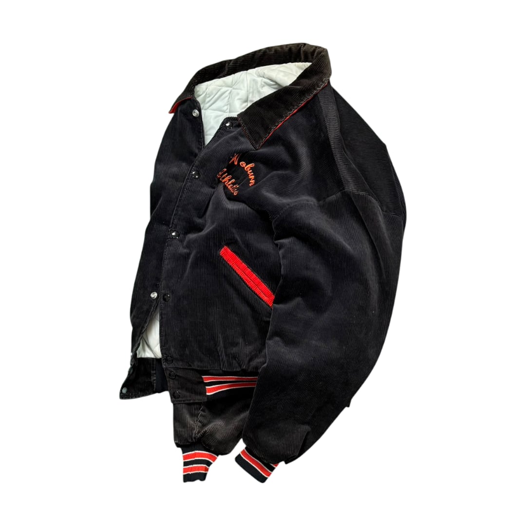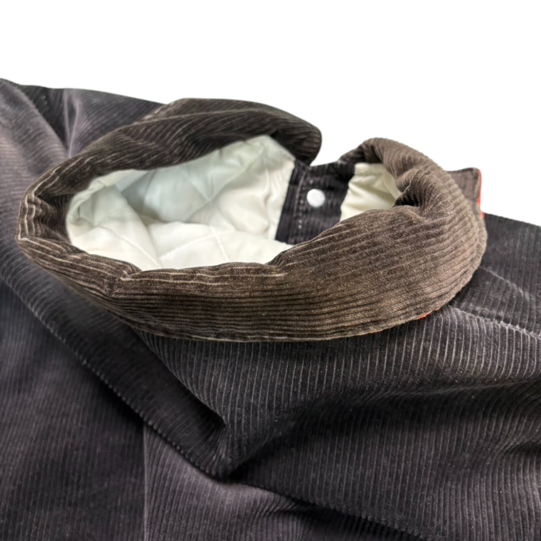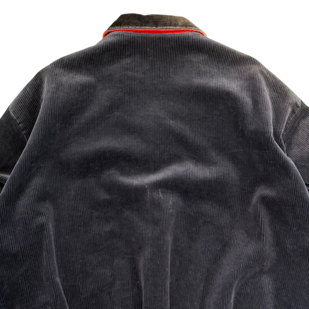 80〜90年代「DeLONG」のコーデュロイスポーツジャケット。しっかりとした厚みのあるコーデュロイ素材で、アメリカ製ならではの頑丈さと存在感を兼ね備えています。サイズは2XLの大きめで、ゆったりとしたシルエットが古着らしいラフさを引き立てます。