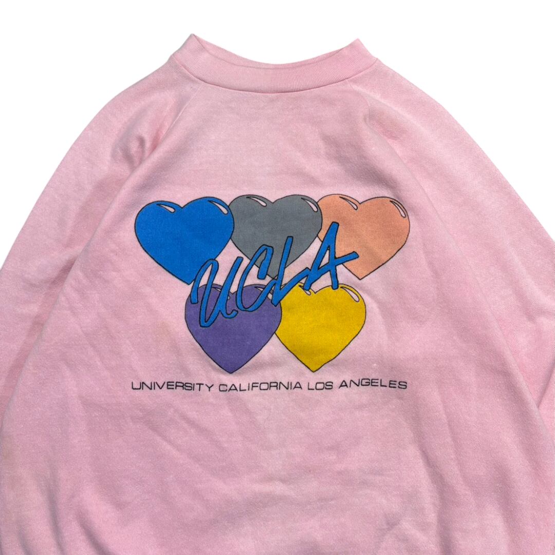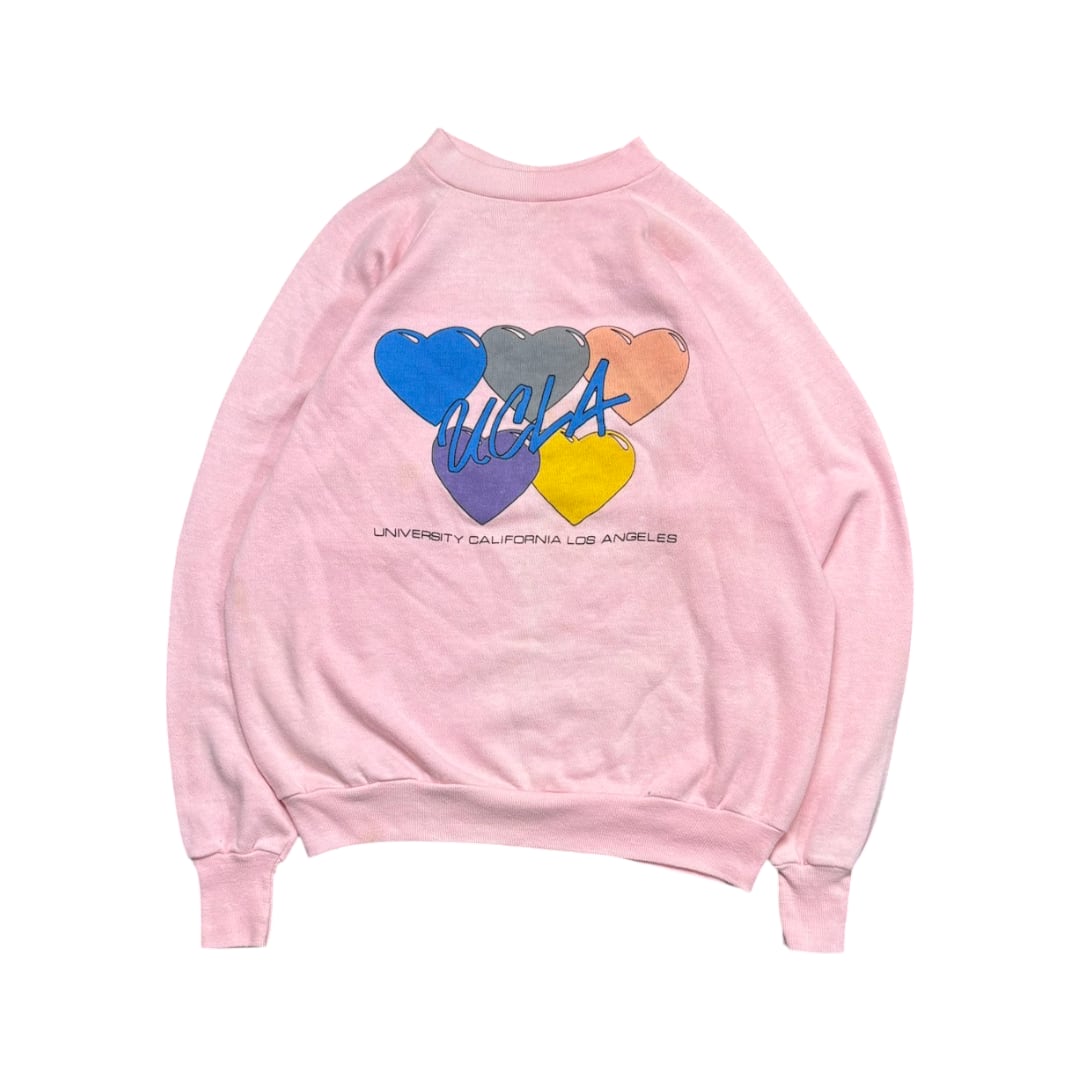 ただの古着スウェットかと思いきや実はカレッジスウェット。カレッジものにしてはかなり珍しいカラーにデザインです。University of California, Los Angelesが愛嬌のある形に。どこか学生の自由な空気や、キャンパスに漂うコミュニティの親しみやすさを感じさせます。