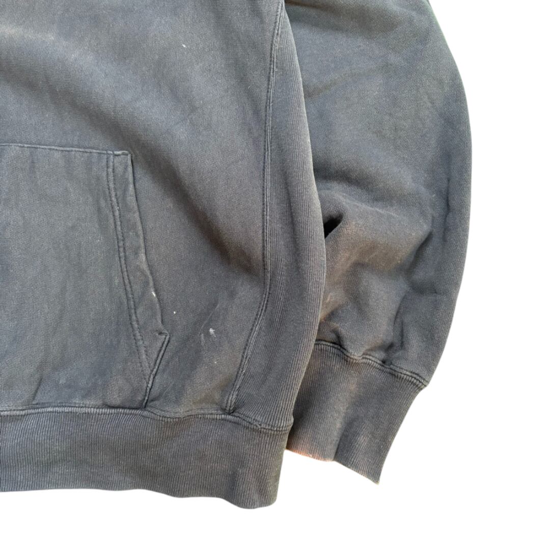 90年代OLD GAPのリバースウィーブスウェットパーカ。GAPのロゴが存在感を放ち、リバースウィーブ特有の頑丈な生地感と立体的なシルエットで、着るだけで古着らしい雰囲気を楽しめます。フェードや小さな穴あきなど、経年変化による表情も魅力的で、単なるヴィンテージ風ではないリアルな古着感を味わえます。