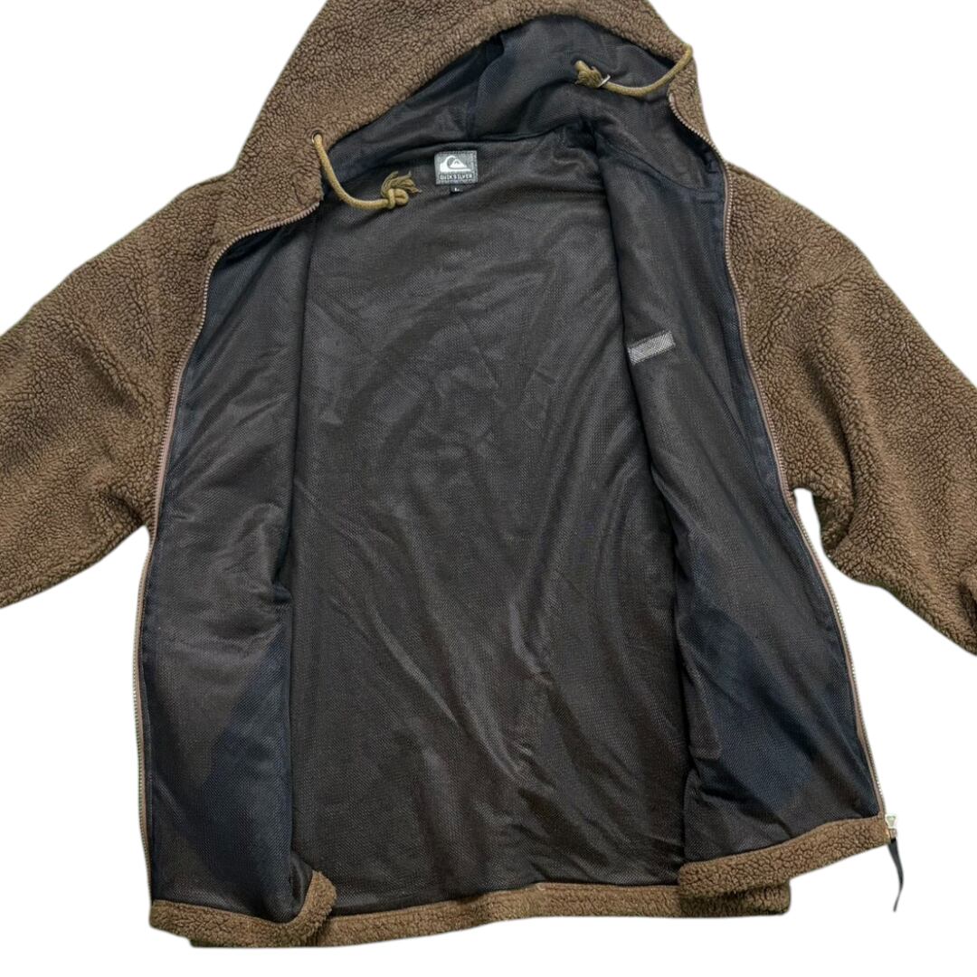 90〜00年代QUIKSILVERのジップフリースパーカー。まず目を引くのは、ブラウンの深みあるカラーと、しっかりデカいボリューム感。アウトドアブランドとは違う、サーフ&スケートカルチャー由来のルーズさとリラックスした空気が、この時代のQUIKSILVERらしさを存分に感じさせます。