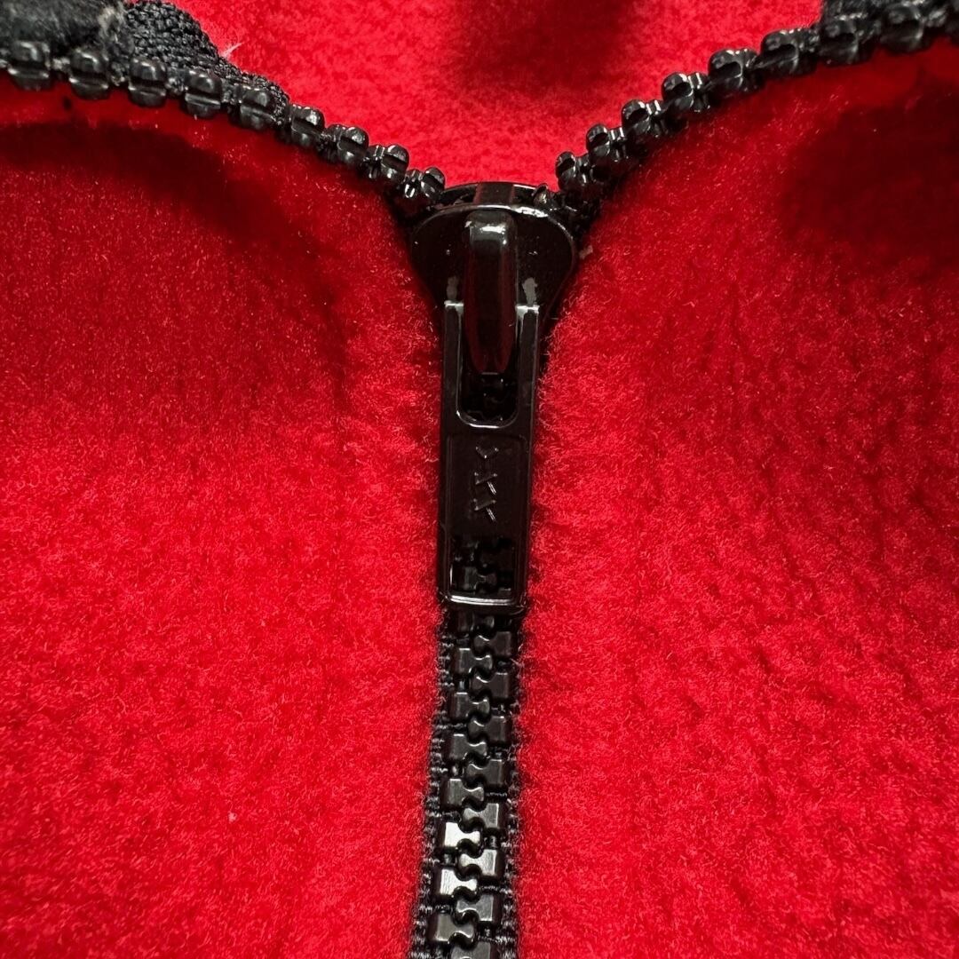 90年代のJ.CREWらしい、シンプルながら品のあるフリースジャケット。鮮やかな赤ボディに、襟を折り返すと黒の切り替えが見えるデザインがさりげなくアクセントになっています。