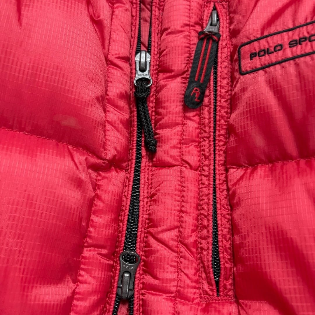 鮮やかな赤が主役になる、90年代 POLO SPORT のダウンジャケット。ひと目で90sの良さが伝わる存在感のあるカラーリングと、アウトドアブランド顔負けのしっかりしたクオリティが魅力です。とにかく軽くて暖かく、ストレスのない着心地。それでいて、身幅・アームも大きめの90sらしいシルエットなので、現代の感覚で着てもバランスが非常に良い一着です。
