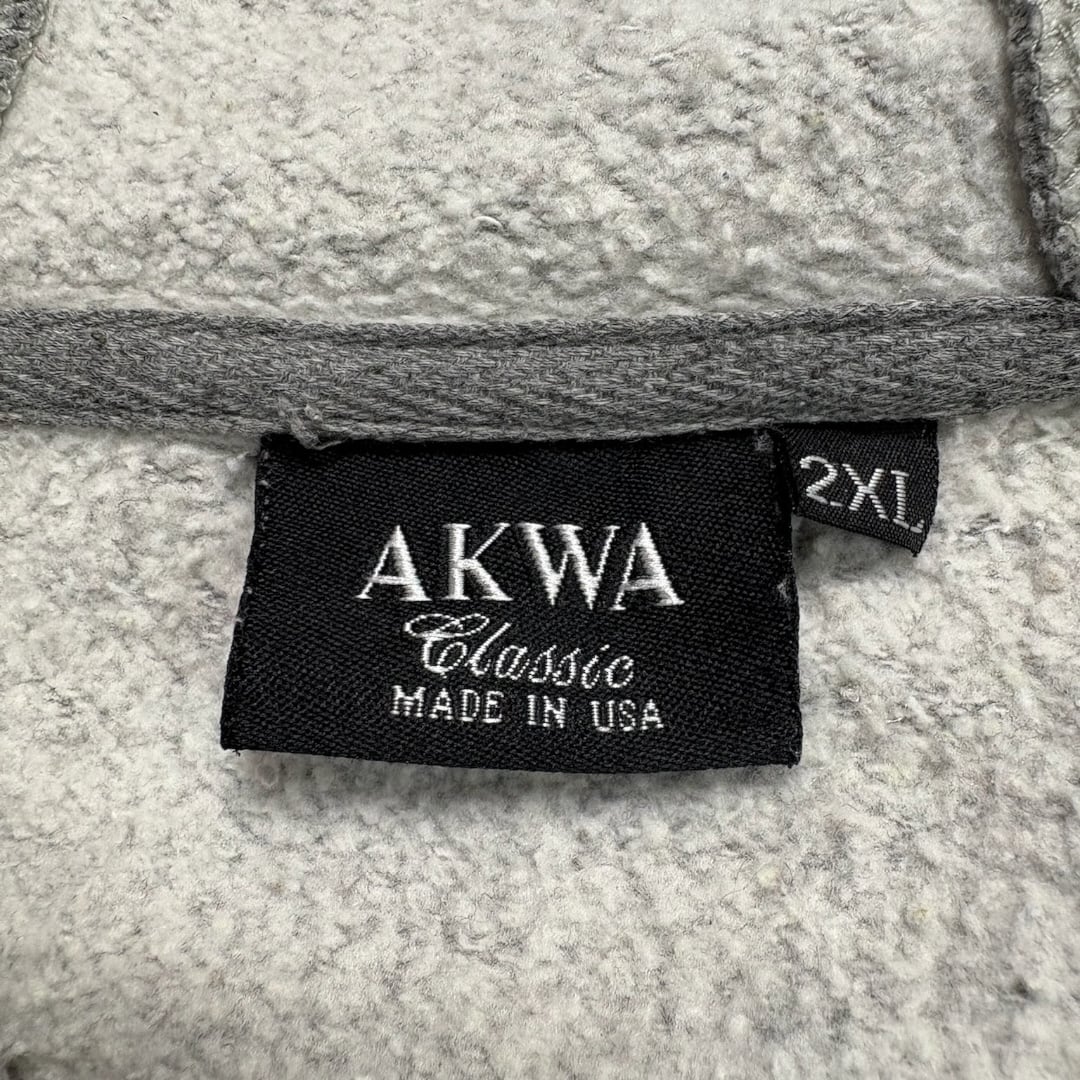 90年代アクワのジップフーディ。一見すると本当にシンプルで、余計な装飾を削ぎ落としたような佇まい。薄手のグレーのスウェット地は軽やかで、胸元にそっと置かれた小さな刺繍が、古着らしさを演出。