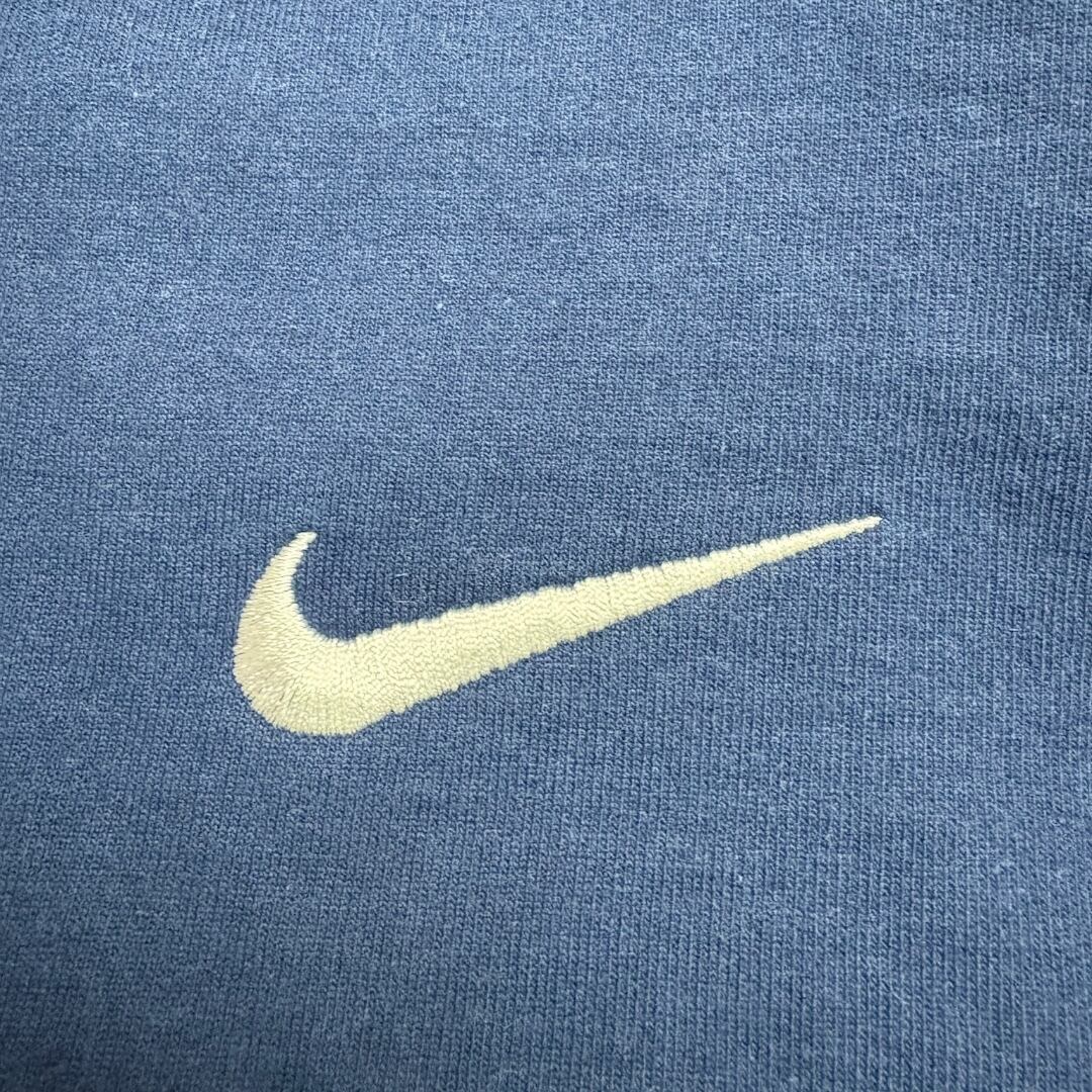 00年代初頭の NIKE、アメリカ製のスウェット。深いネイビーのボディに、小さく控えめなスウッシュ刺繍。何もしないようでいて洒落てるタイプの一枚です。主張しすぎないロゴの入り方が絶妙で、スポーツブランド特有のギラつきがなく、むしろ上品でクリーンな印象さえ漂います。