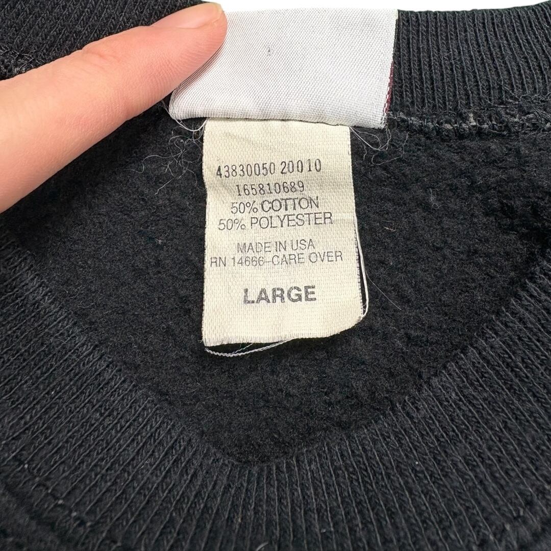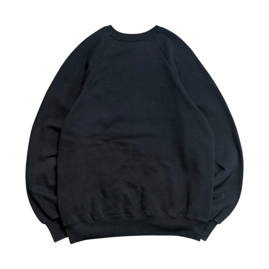 企業ロゴでもカレッジでもない、意味不明で説明しきれないプリント。それでも「なんかいい」と思わせるのが、このスウェットの一番の魅力です。