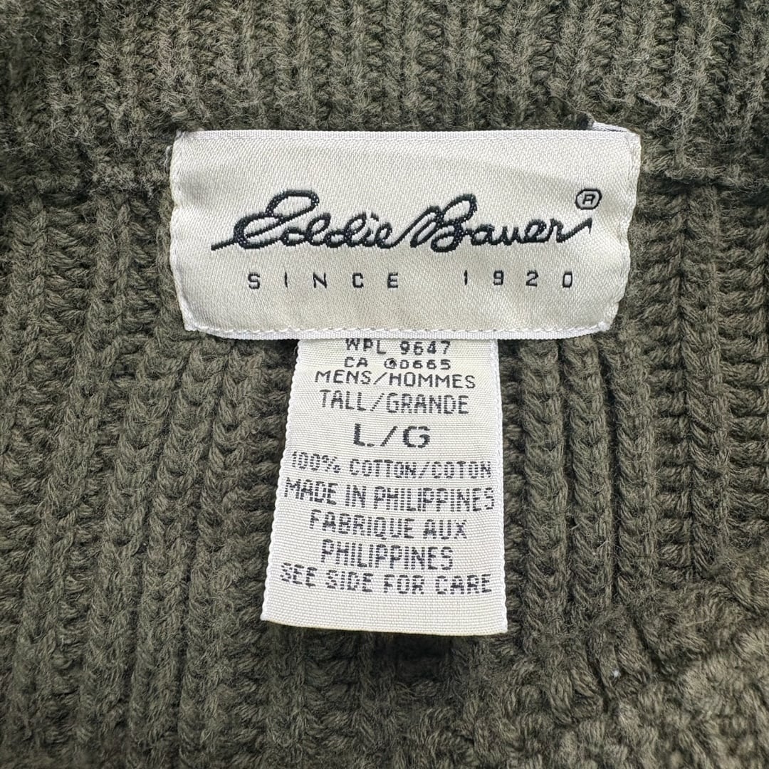 ウールではなくコットン素材という点もポイントで、チクチク感がなくロングシーズン使える実用性の高さが魅力。90sエディーバウアーらしい、アウトドアブランドならではの堅実な作りで、日常着としてガシガシ着られる安心感があります。
