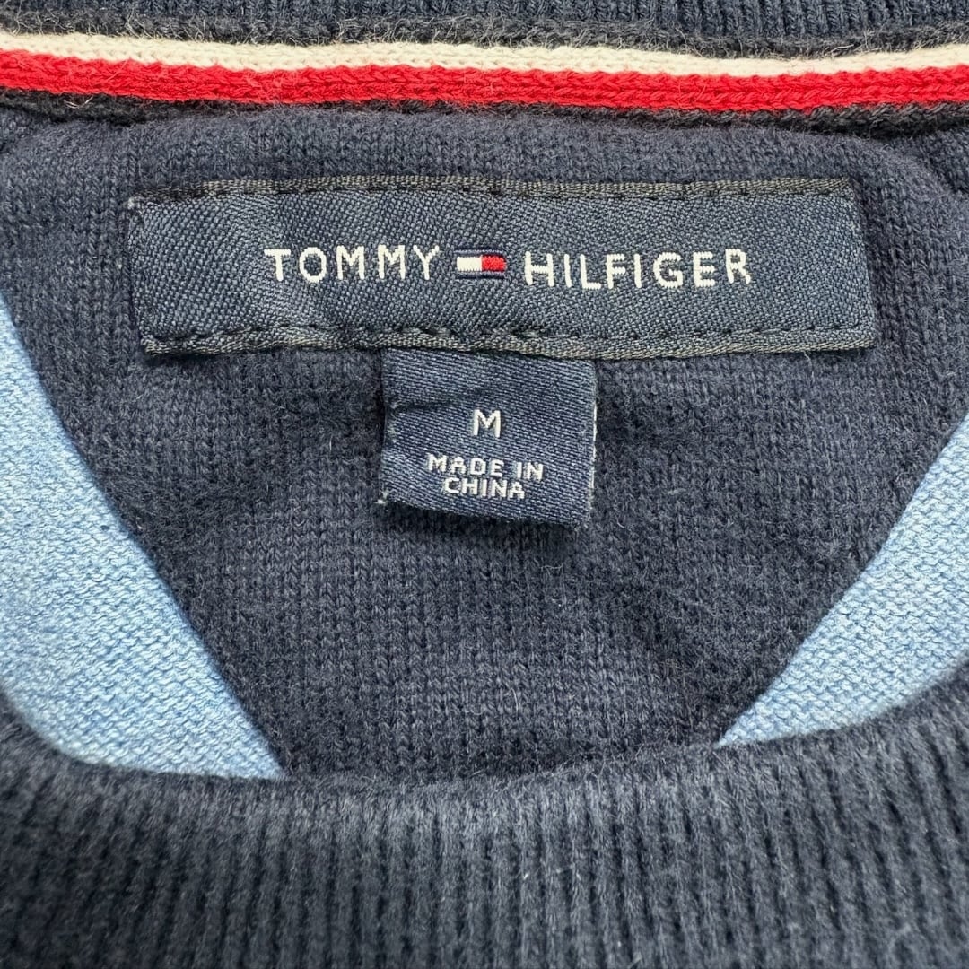 ネイビー×水色の太ピッチボーダー。一見キャッチーですが、色数を抑えているので派手すぎず、かなり扱いやすい一枚です。トミーらしいクリーンさがありつつ、どこか90s以降のプレッピー〜ストリートの空気も感じる、ちょうどいいバランス。