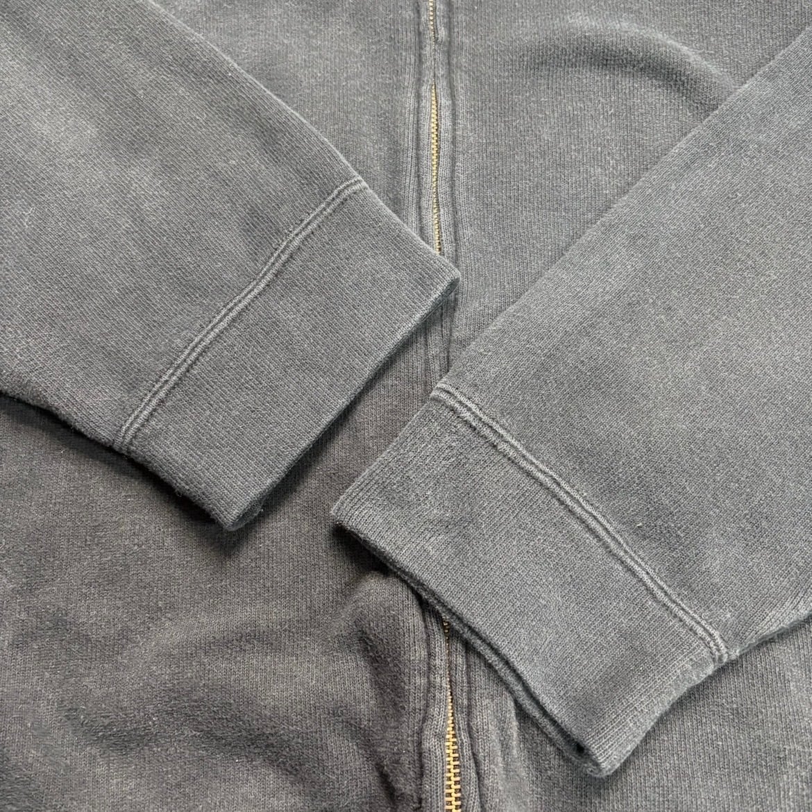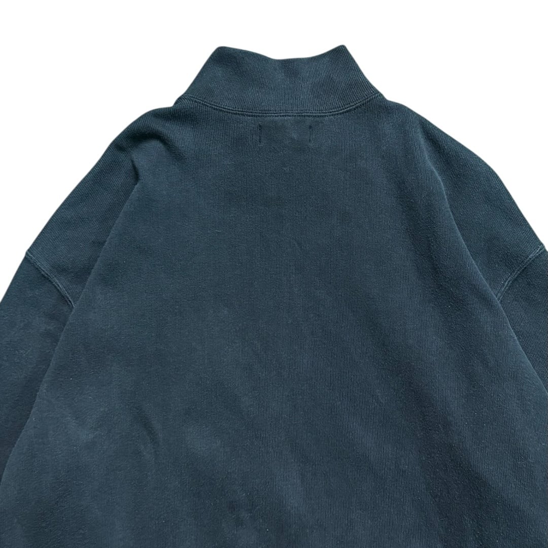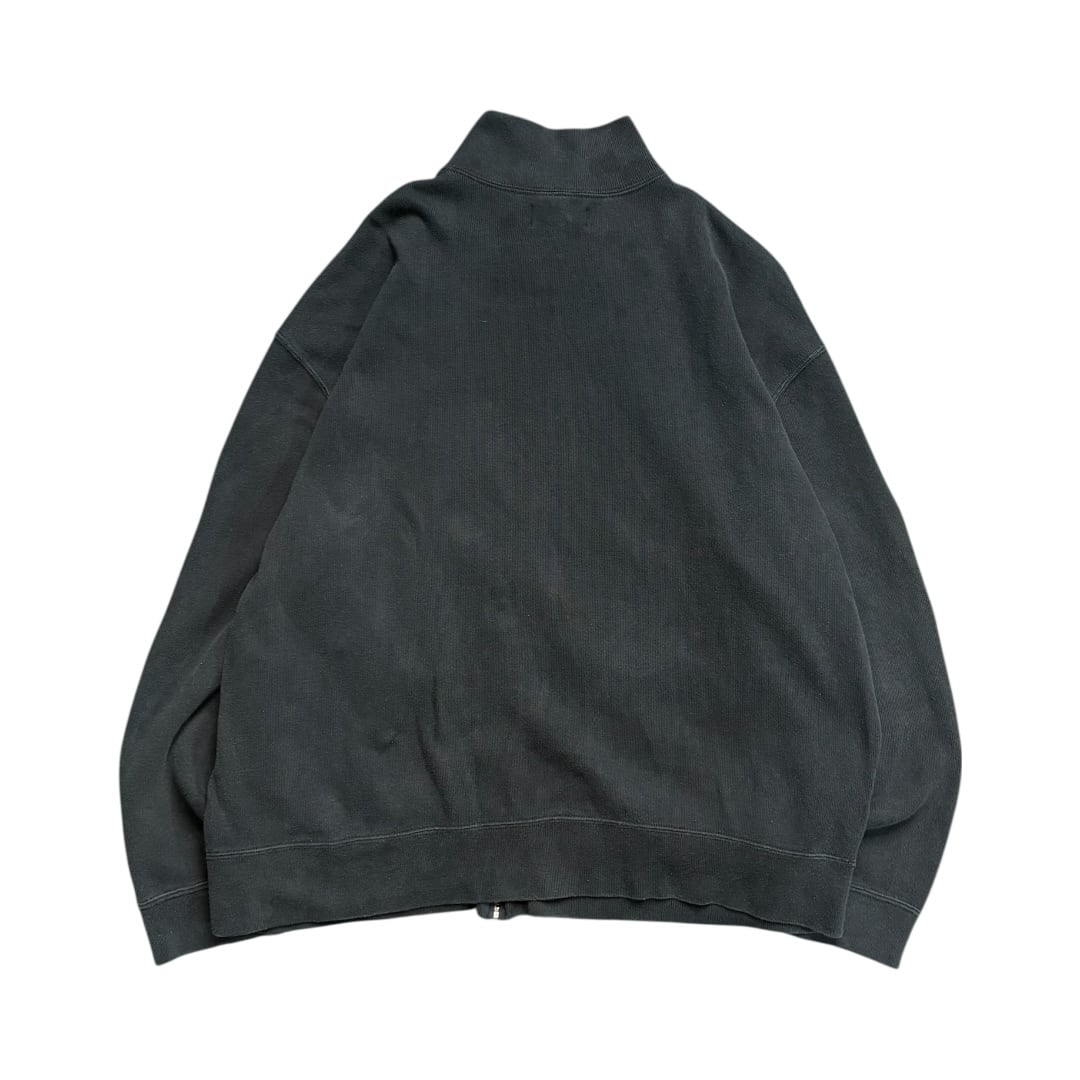 立ち襟、フルジップ、ポケット付き。この一枚の一番おいしいポイント。スウェットの構造としては面白い。古着好きほど反応してしまうディテールです。