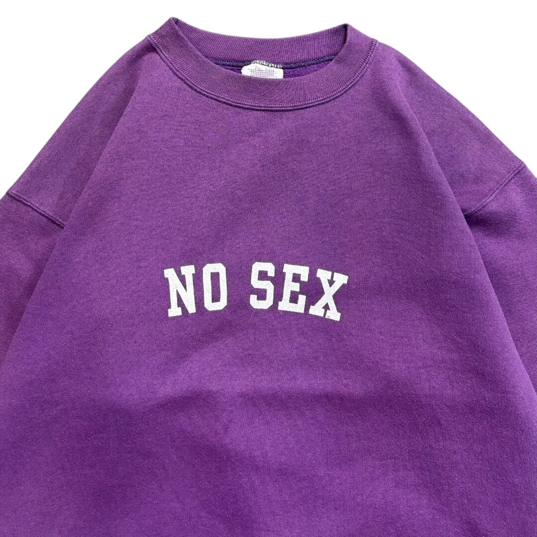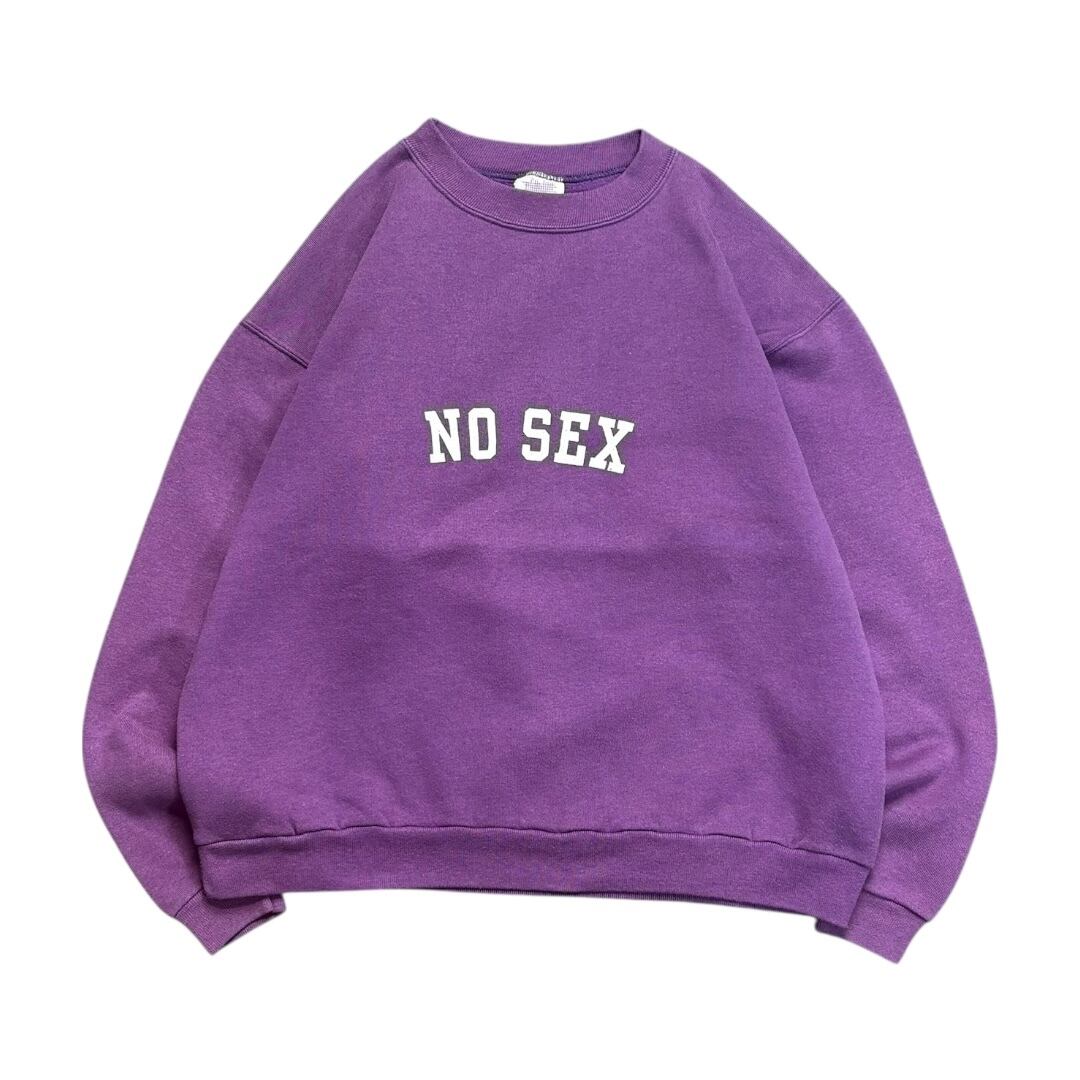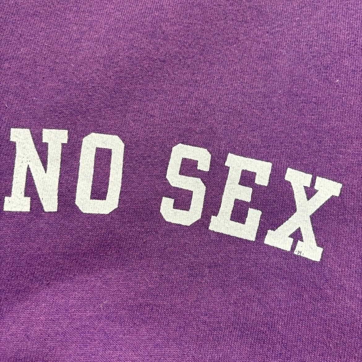 90年代のアメリカ製ボディをベースに、オリジナルでプリントを施した一枚。フロントには、 “NO SEX” の文字を、カレッジロゴ風のレイアウトで配置しています。