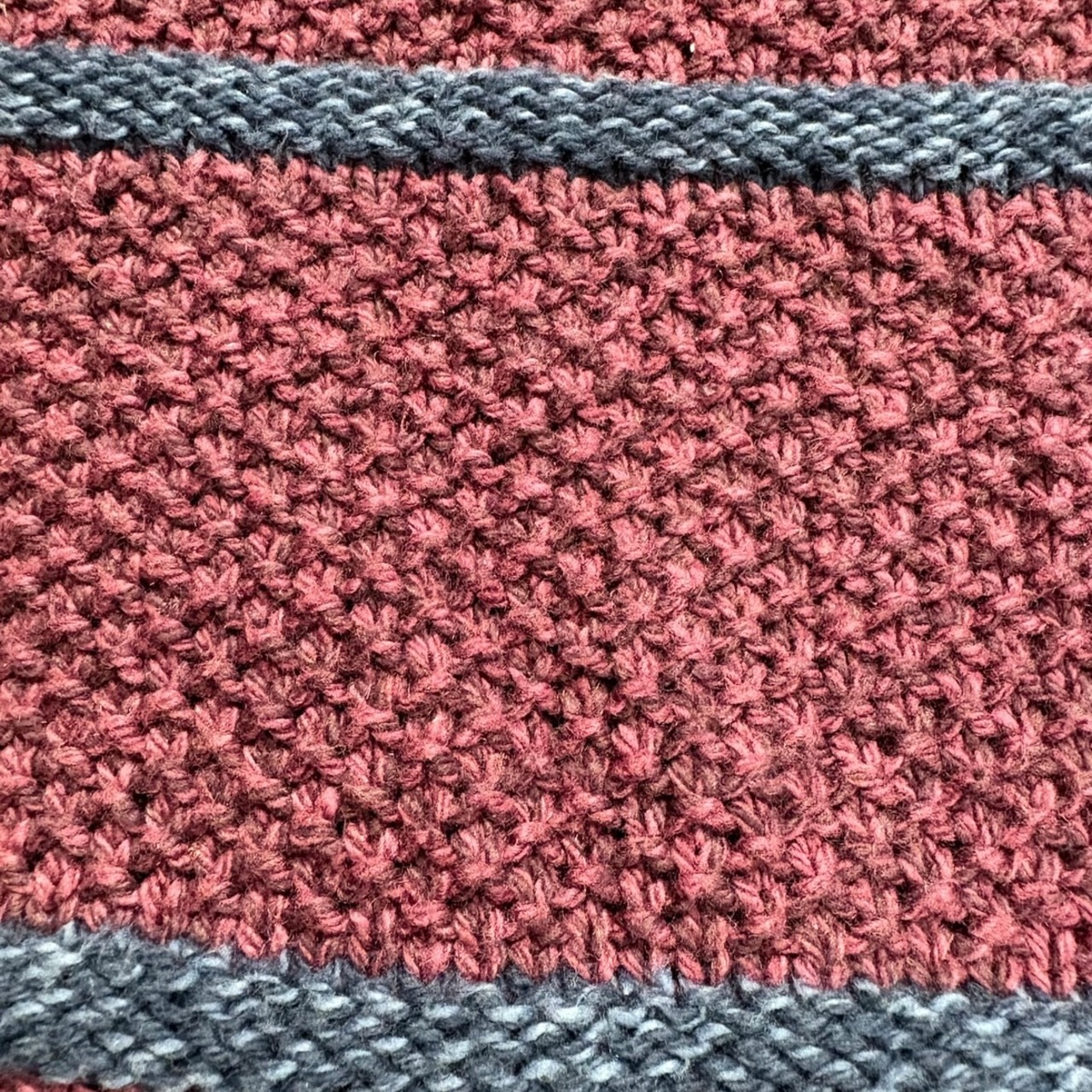 落ち着いたトーンの暗い赤をベースに、細いラインが5本走るミニマルなボーダーパターンで、主張は控えめながらしっかりと存在感のある一枚です。