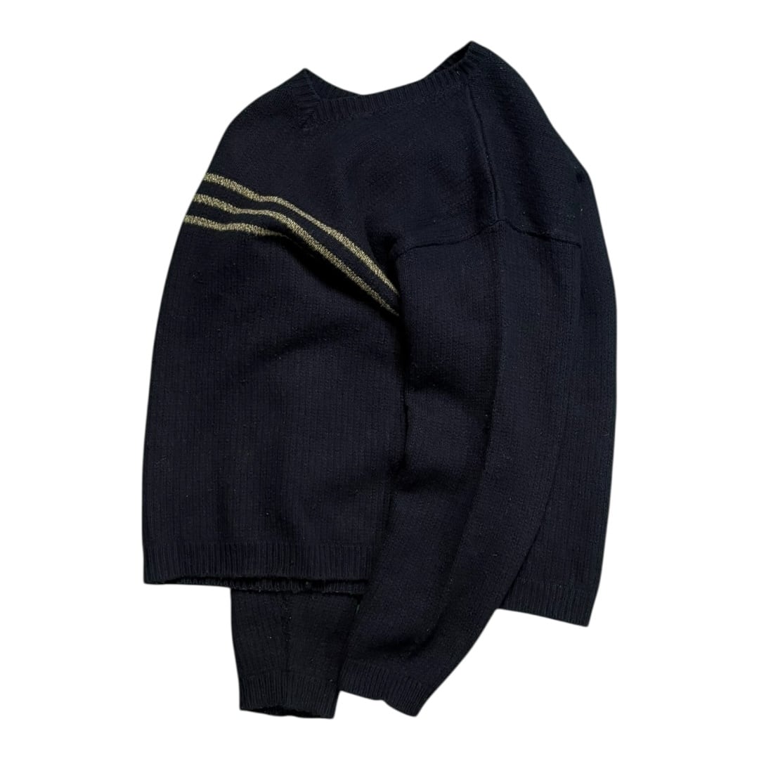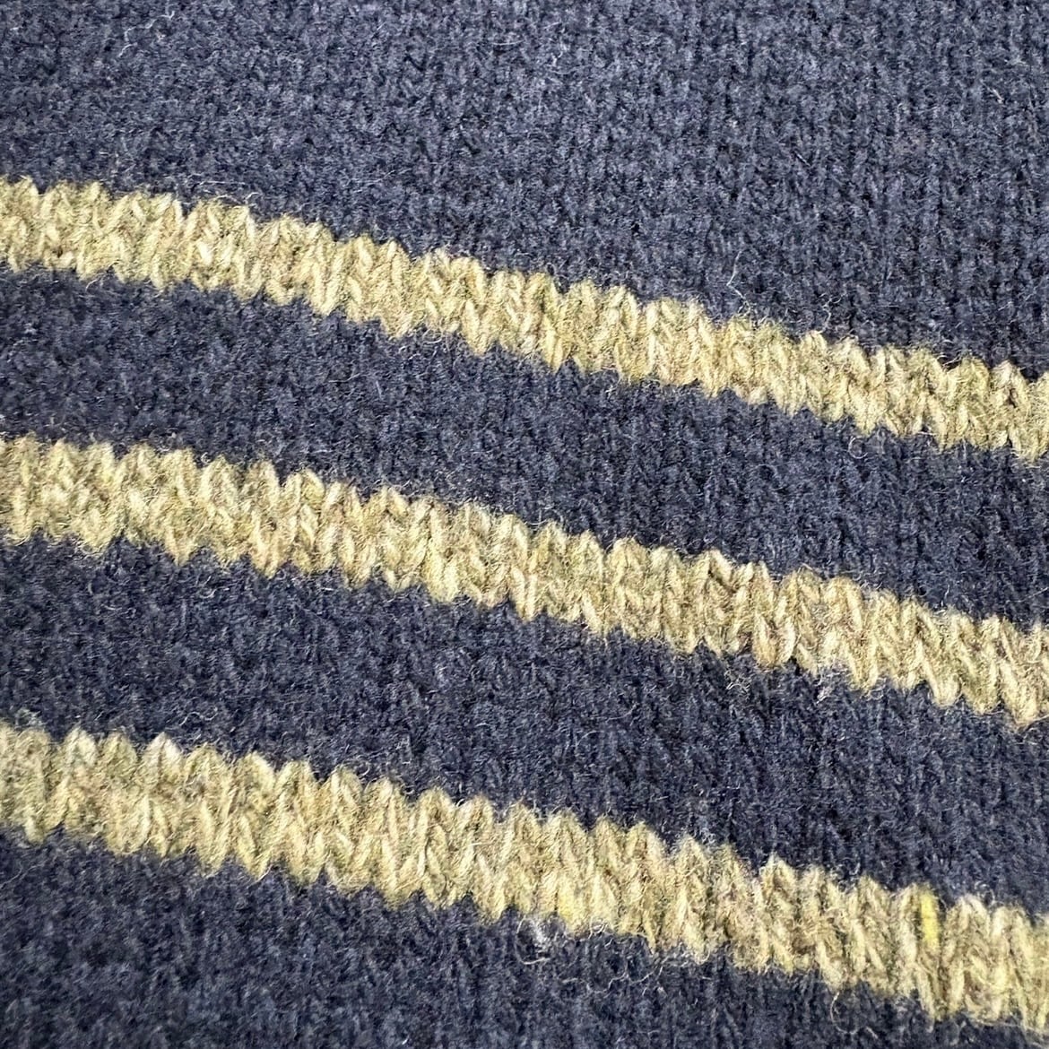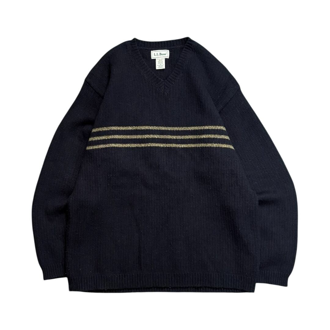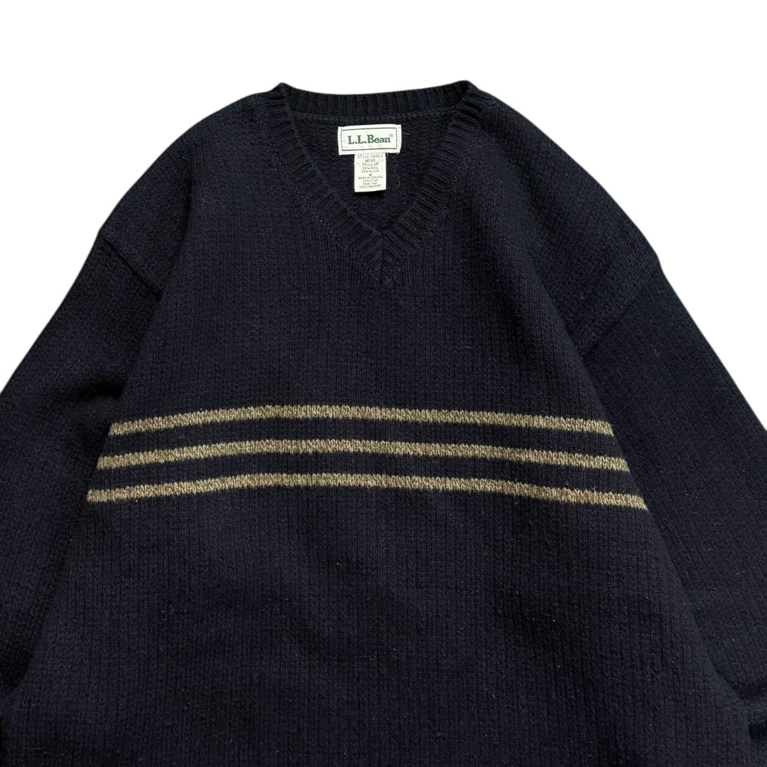 まず目を引くのが、胸元に入る3本ライン。古着のニットで胸にラインが入る個体自体は珍しくありませんが、3本というのは初めて見ました。どこかadidasを連想させるスポーティさがあります。ただし、あくまでL.L.Beanなので、主張しすぎず品のある落とし込みになっているのがポイント。