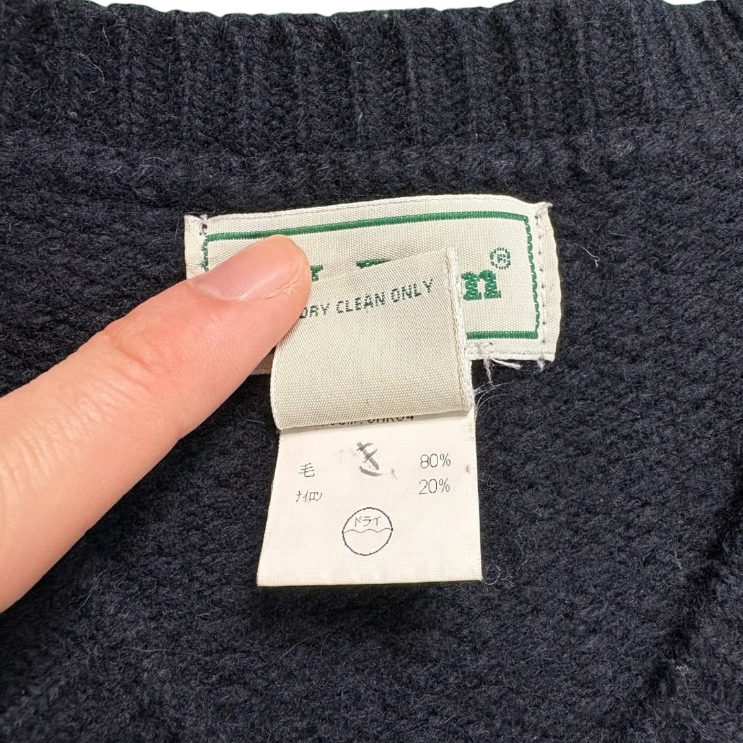 アウトドアブランドらしい実用性と、90年代らしいデザインの遊びが同居した一枚で、ウールの質感もよく、真面目すぎるニットになっていません。Vネック×ライン入りという組み合わせも、スクール感やプレッピーな空気を感じさせつつ、古着ならではのラフさがあります。