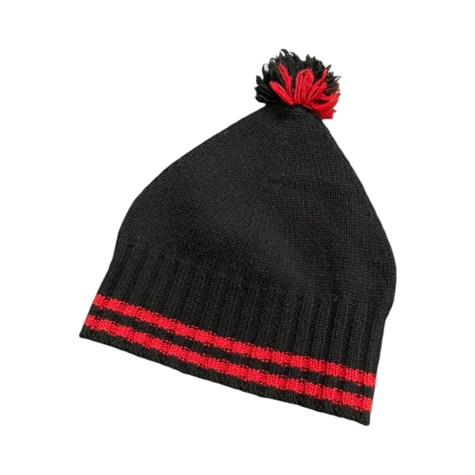 ブラック×レッドの配色はクラシックで、どこかアイビースポーツやスキーウェアの文脈も感じさせます。ポンポン付きですが子供っぽさはなく、むしろスタイリングの“ハズし”としてかなり優秀。シンプルなアウターやモノトーンのコーデに合わせるだけで、一気に雰囲気が出ます。