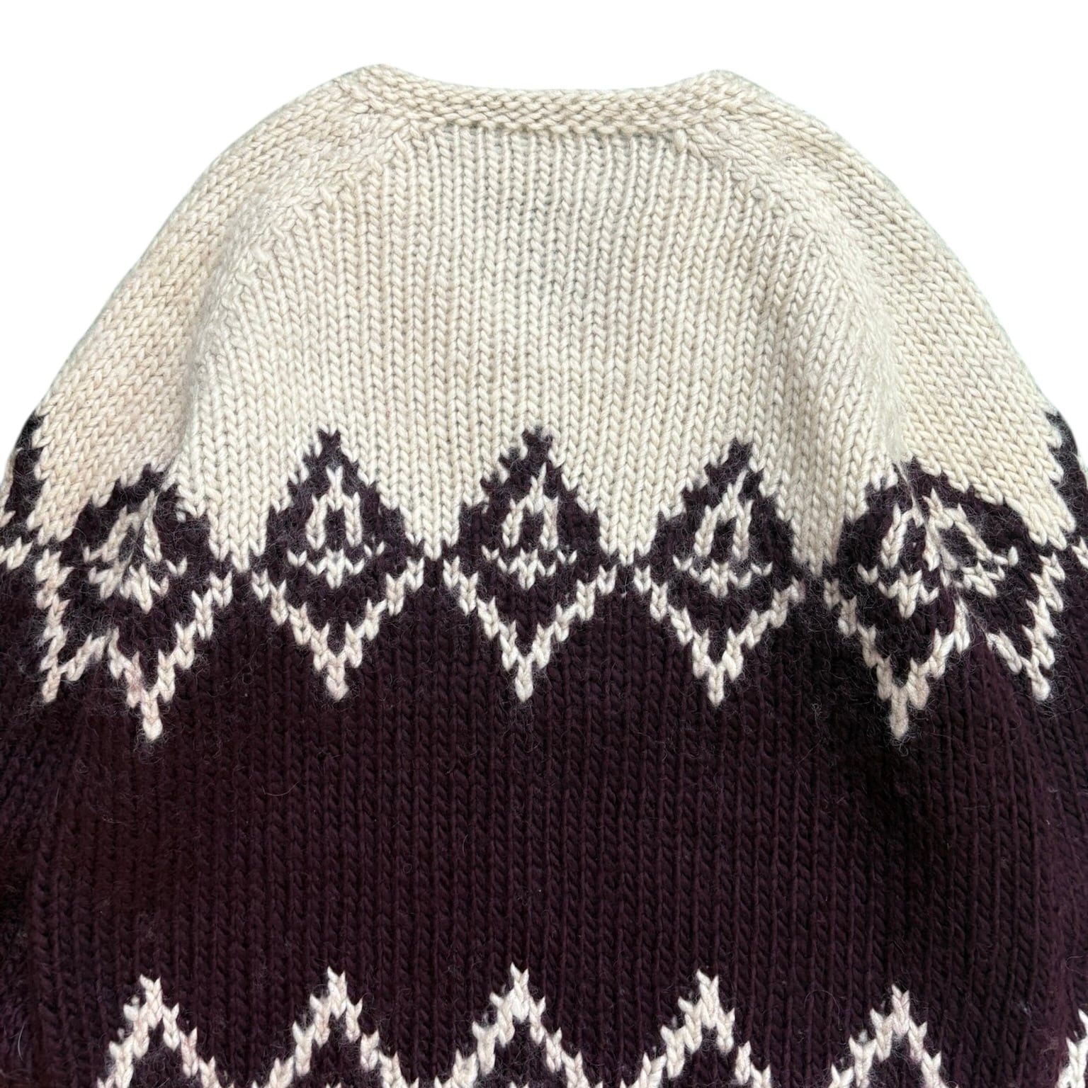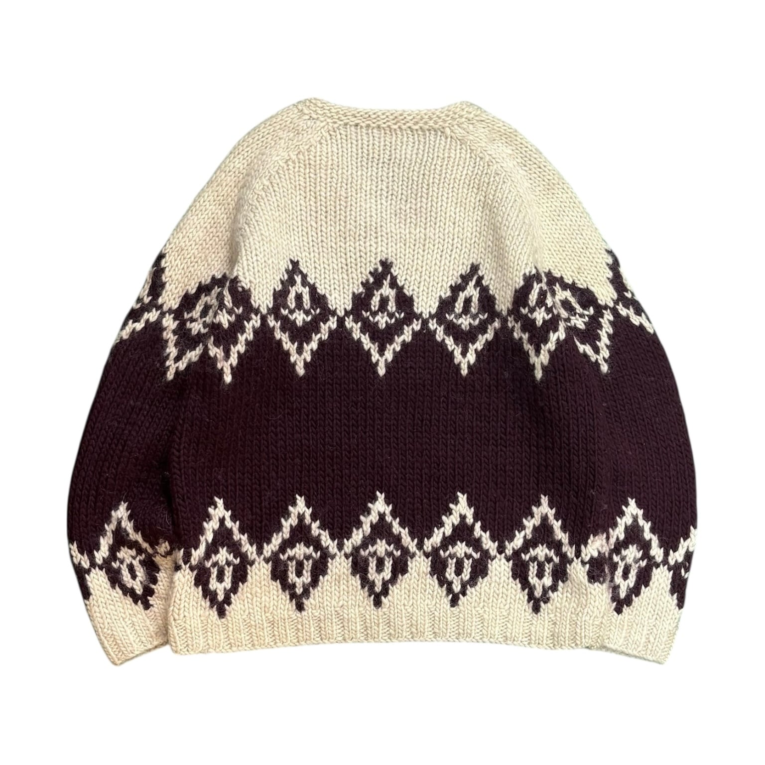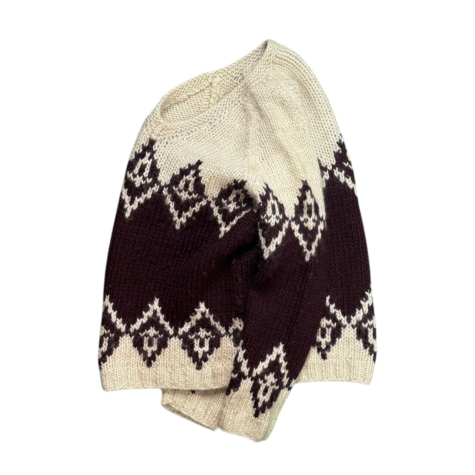 00年代J.CREWの中でも、ひときわ存在感のある「HAND KNIT」表記のウールVネックニット。ざっくりと編まれた厚みのある生地で、手編みならではの立体感がしっかり伝わってきます。触った瞬間に「これはいいな」と分かる、古着らしい説得力のある一枚です。