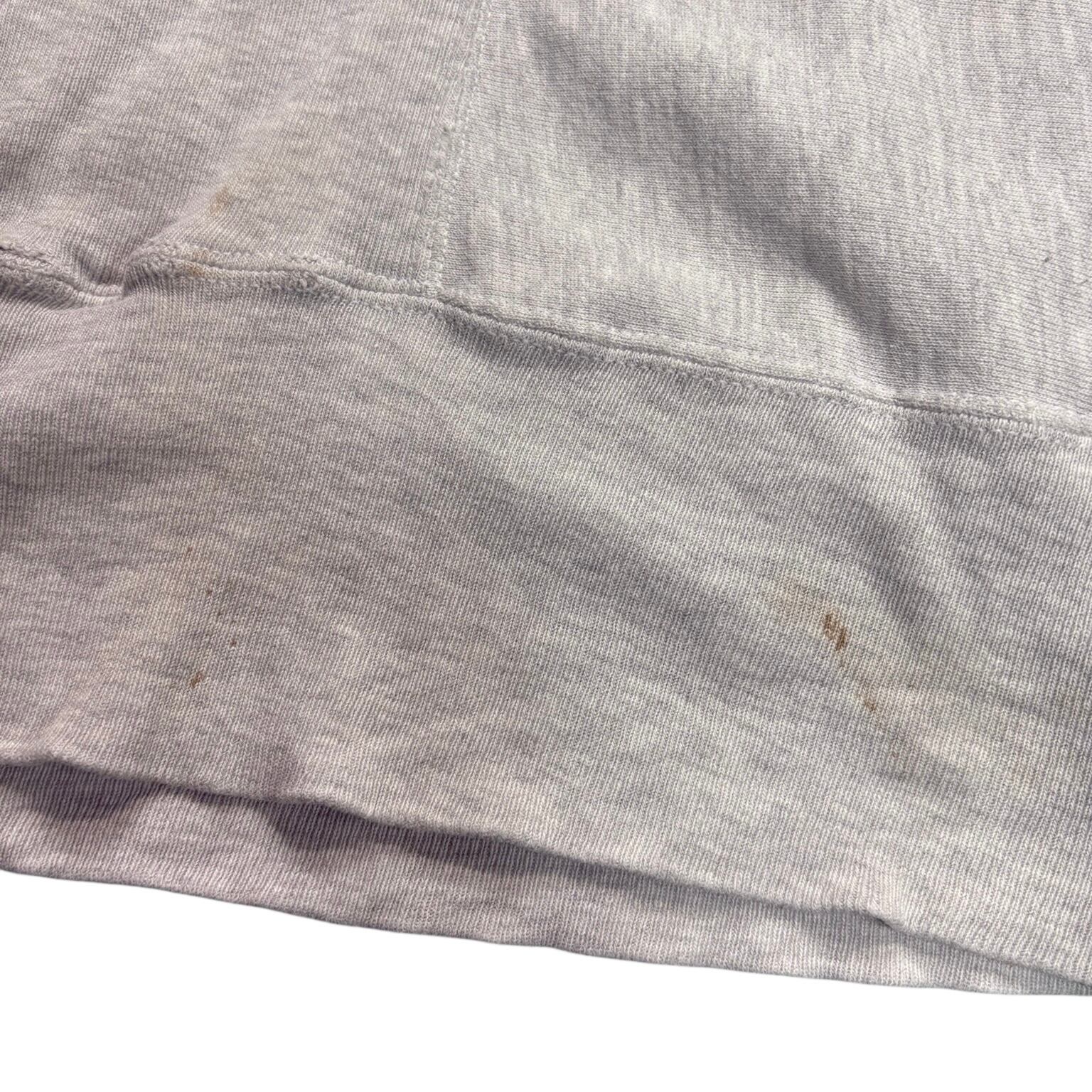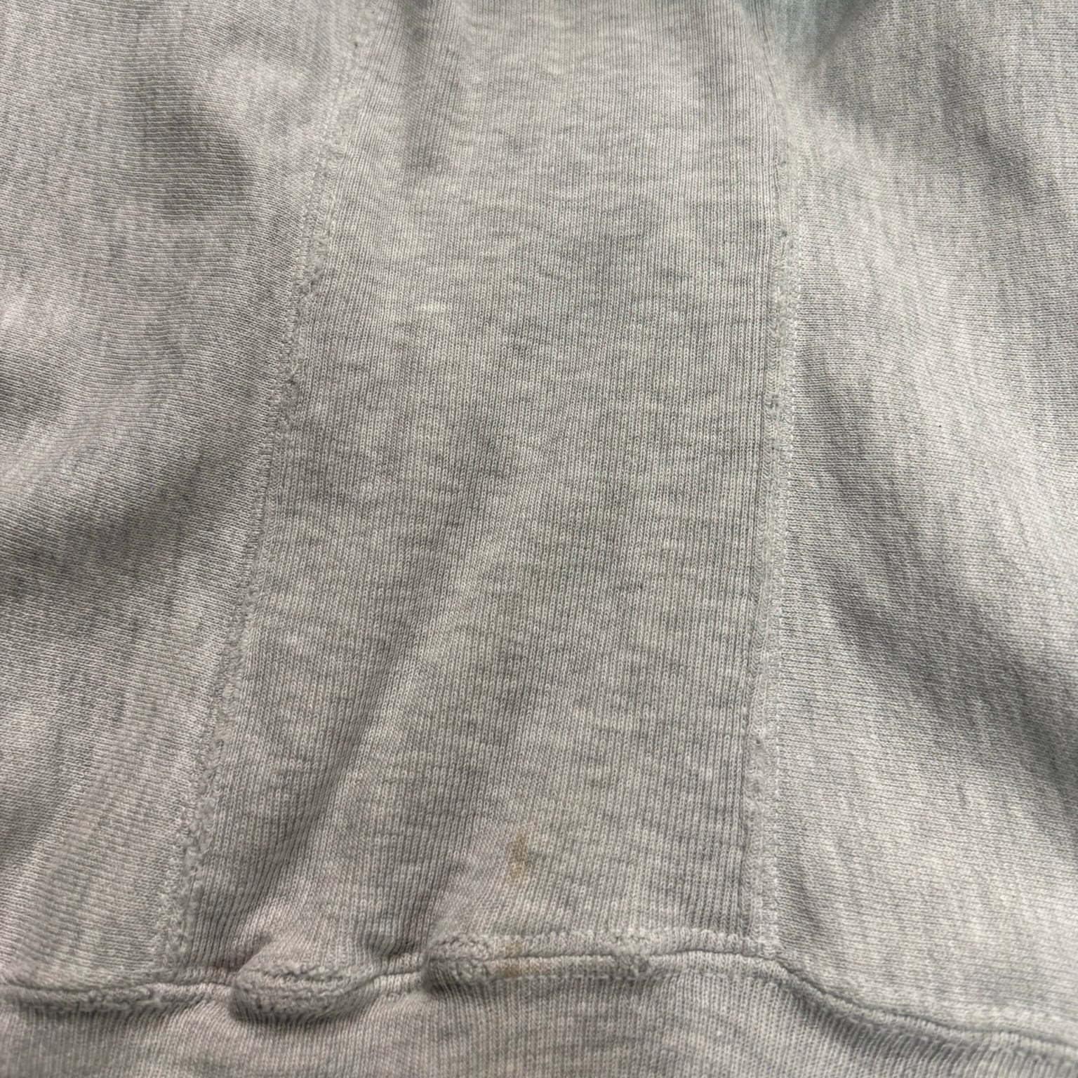 一般的なリバースウィーブに比べて生地は薄手で、あの特有のゴワつきが少ない個体。身幅がしっかり広く、着丈とのバランスもよく、今の感覚でかなり着やすいシルエットです。インナーにも使いやすく、重ね着しても硬さが出ません。
