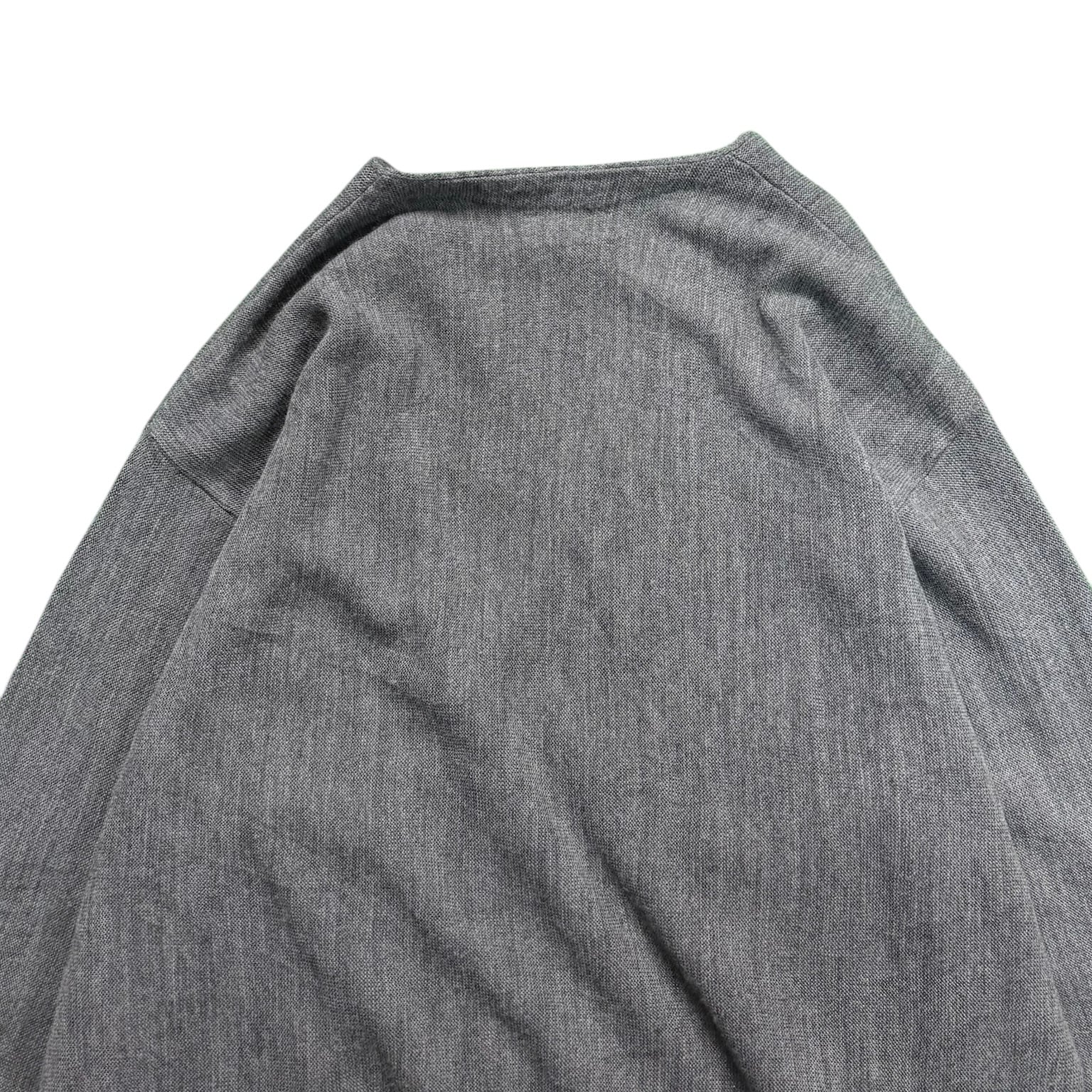 カラーはグレー。主張しすぎない分、合わせる服を選ばず、インナー次第で雰囲気を変えられる万能な色味。シャツやカットソーの上からはもちろん、アウターの中に仕込んでも使いやすいです。