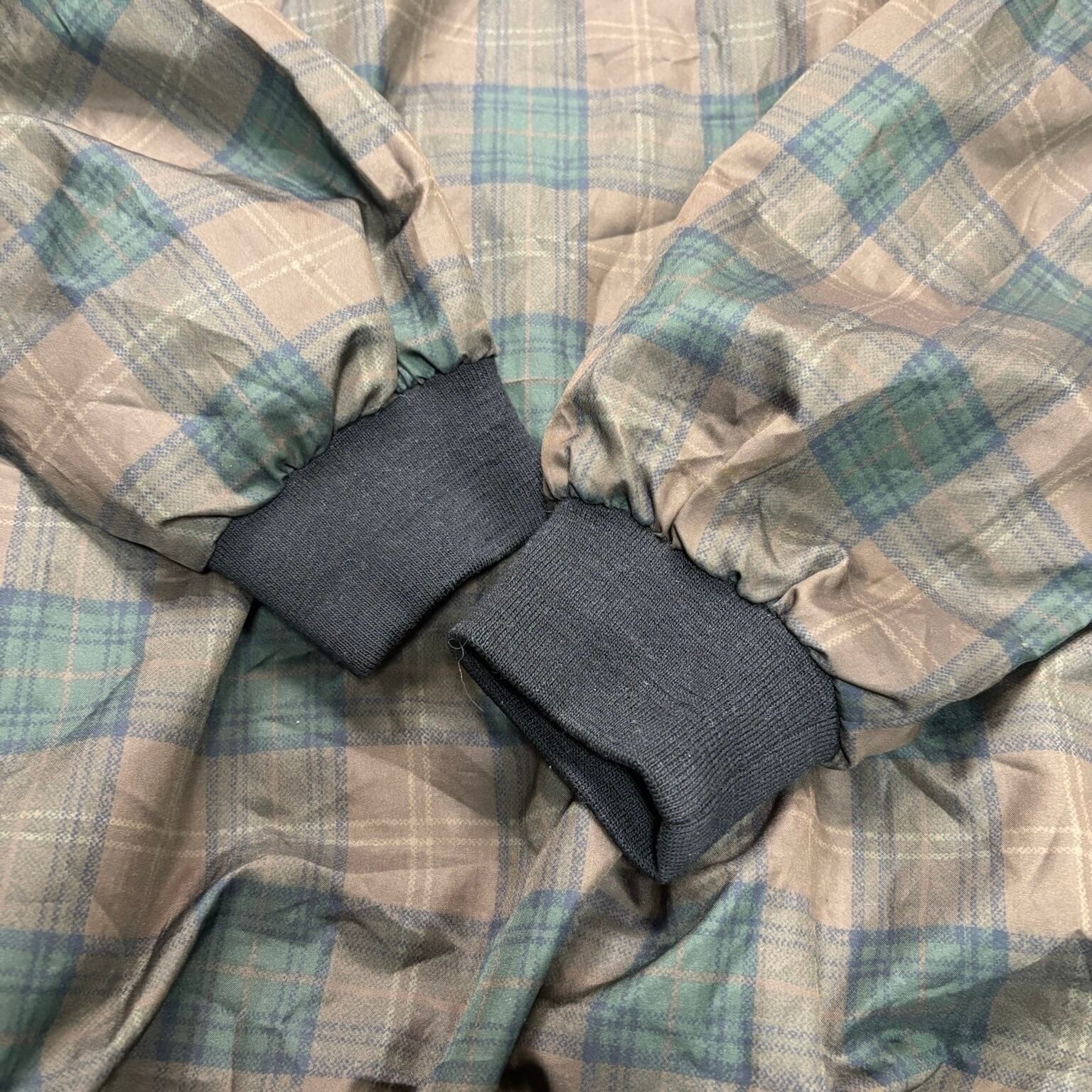 XLサイズで身幅にゆとりがあり、パーカーやスウェットの上からも羽織りやすい作り。ゆったりしたサイズ感は90sらしいリラックスしたシルエットで、肩の力を抜いたカジュアルコーデに最適です。チェック面は落ち着いたカラーリングなので、ジーンズやチノパンとの相性も抜群。スニーカーやキャップと合わせたストリートスタイルも楽しめます。