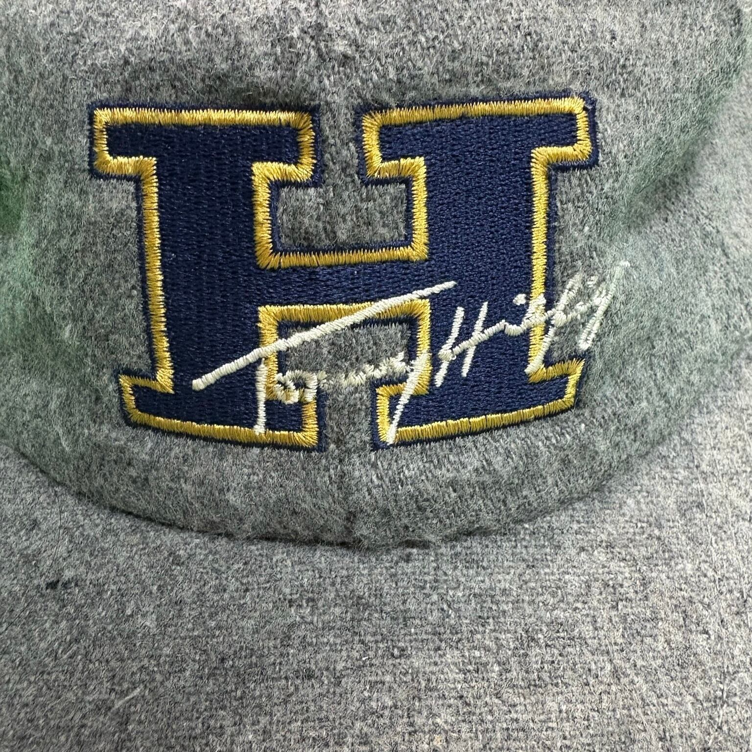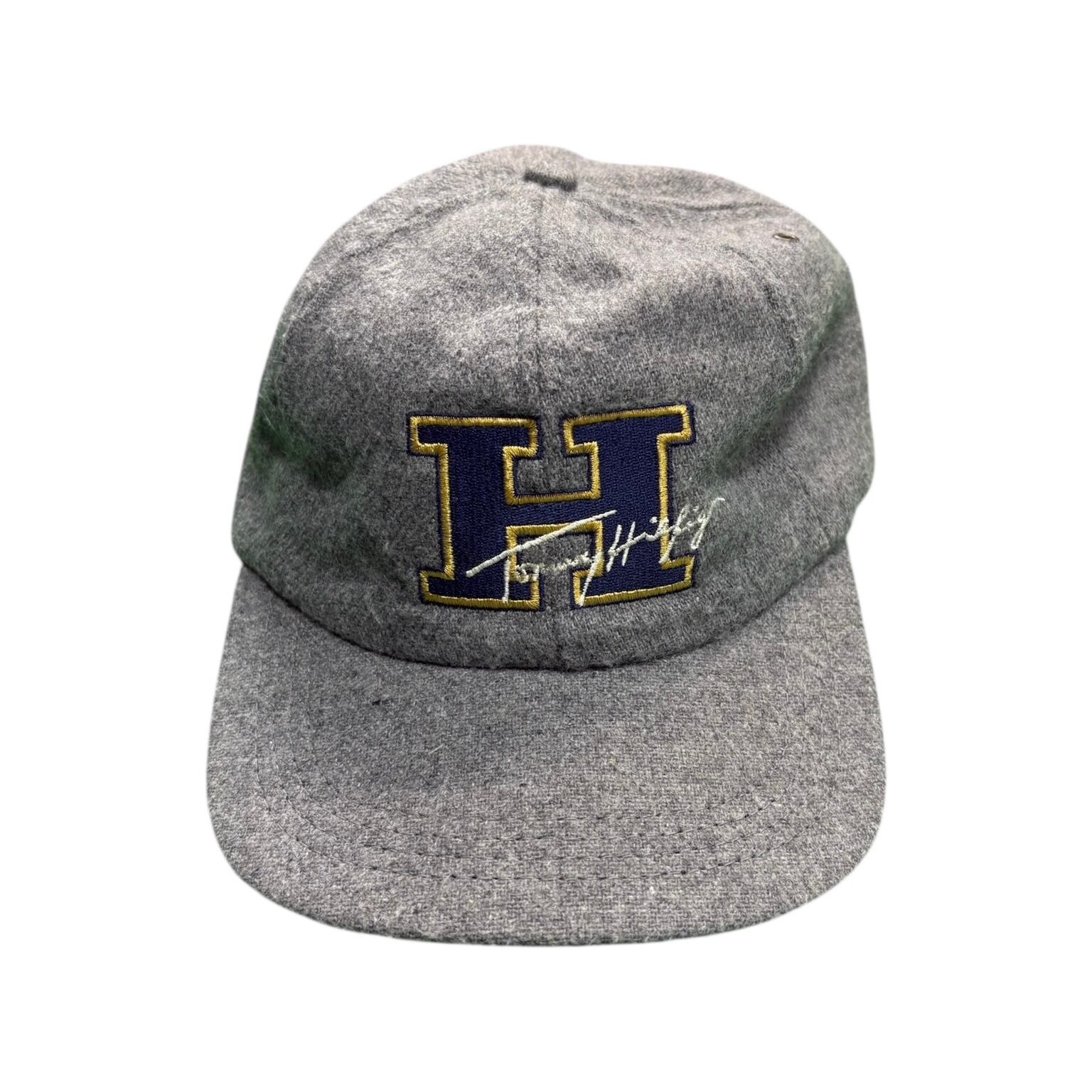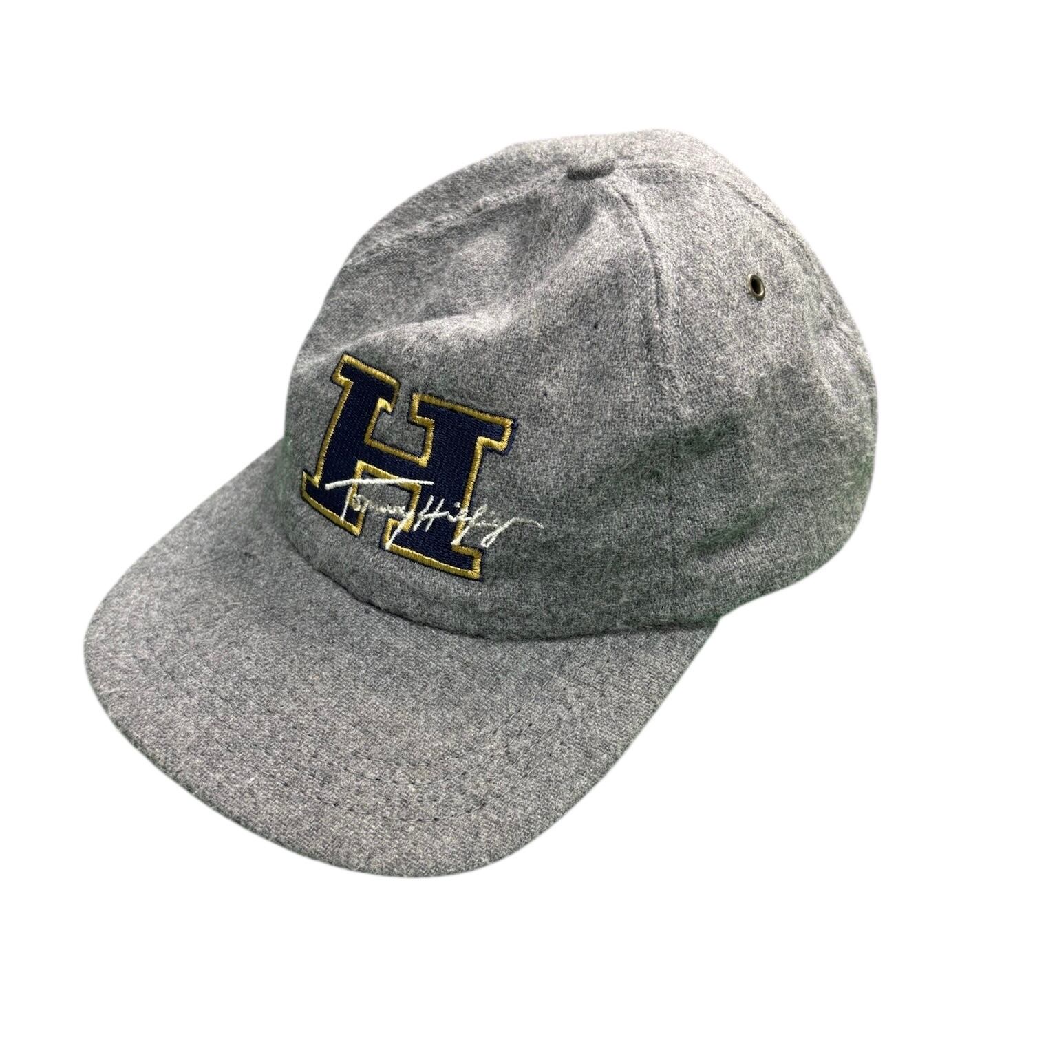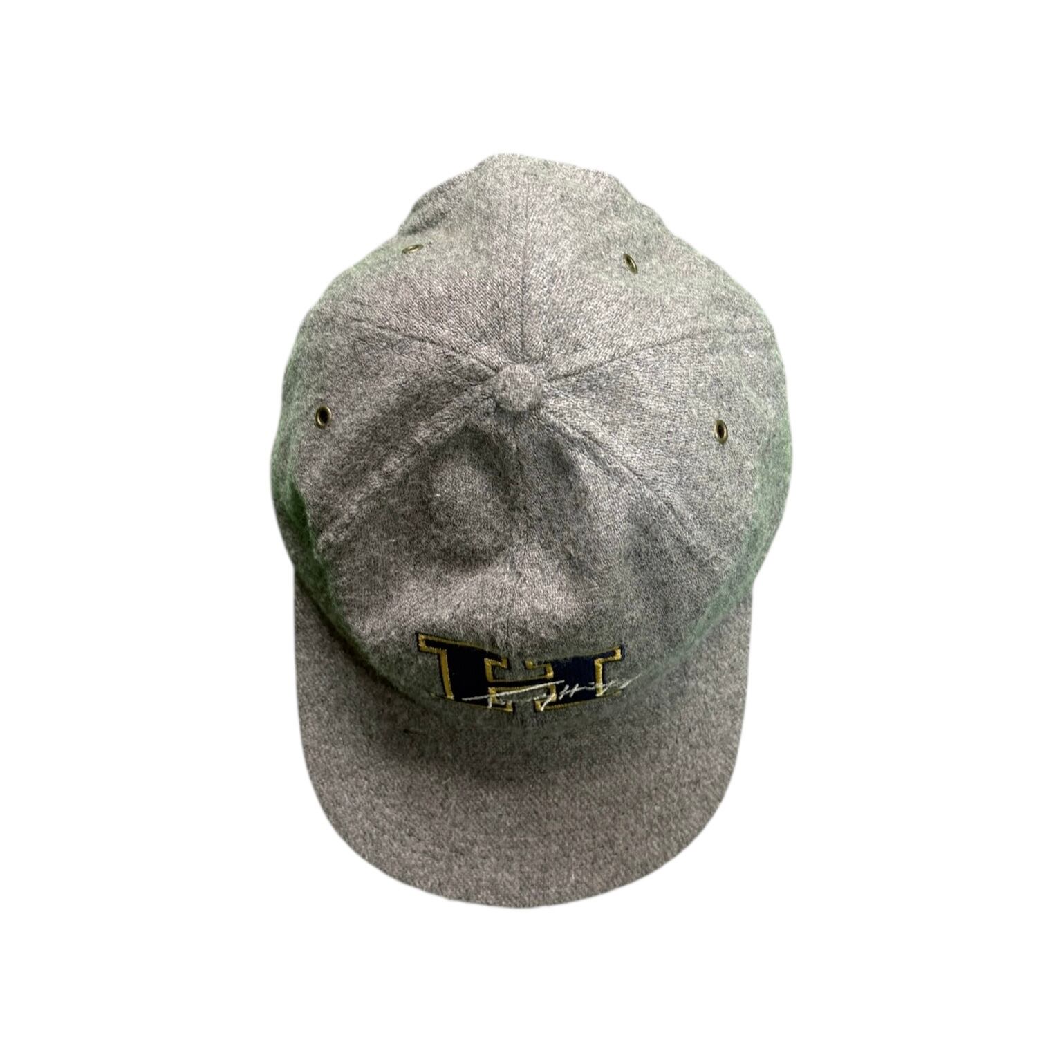 90年代の「TOMMY HILFIGER」のキャップ。グレーのウールボディに、フロントには大きく“H”の文字が刺繍され、浅めのシルエットで被りやすく、形の美しさが際立ちます。アメリカ製ならではのしっかりした作りも魅力です。