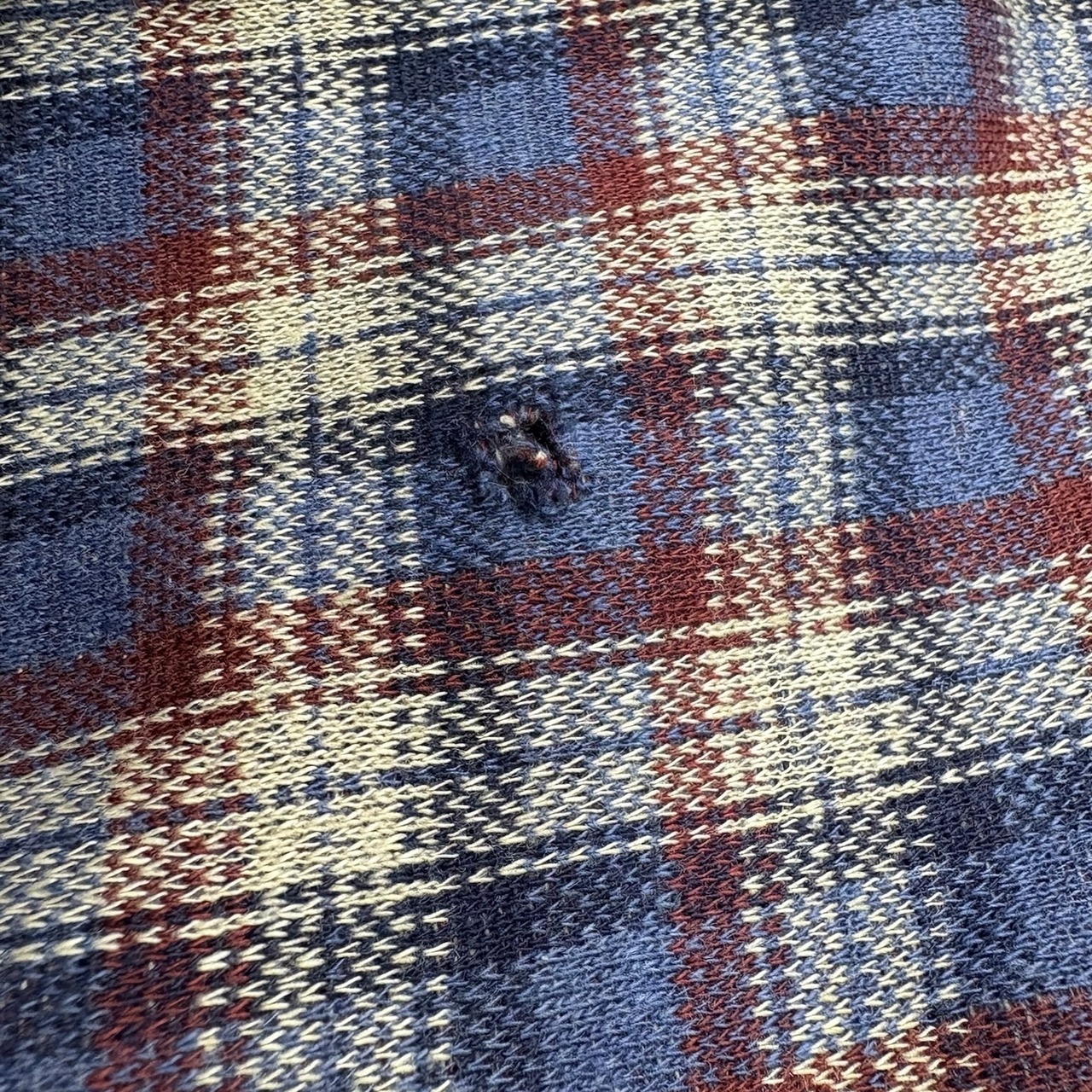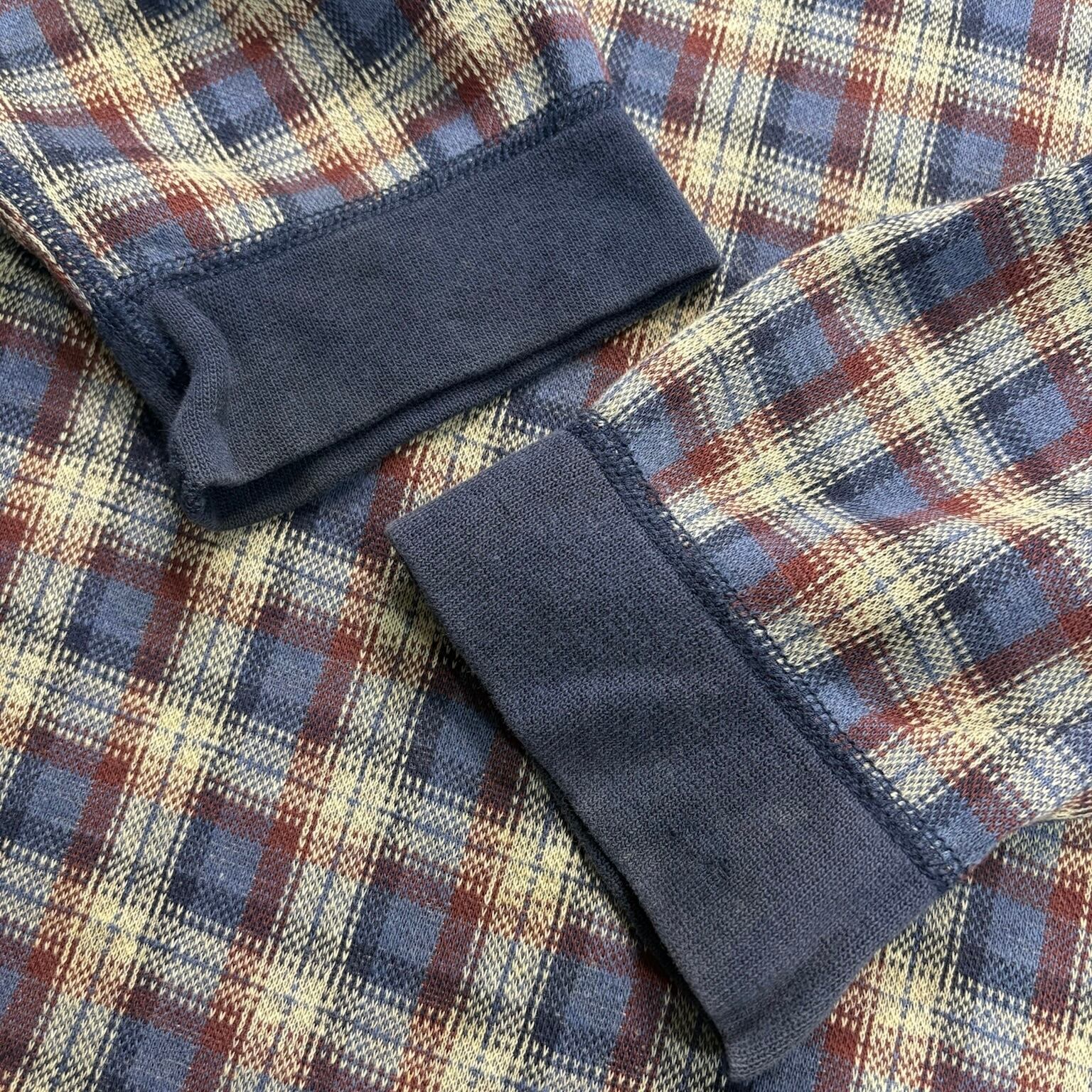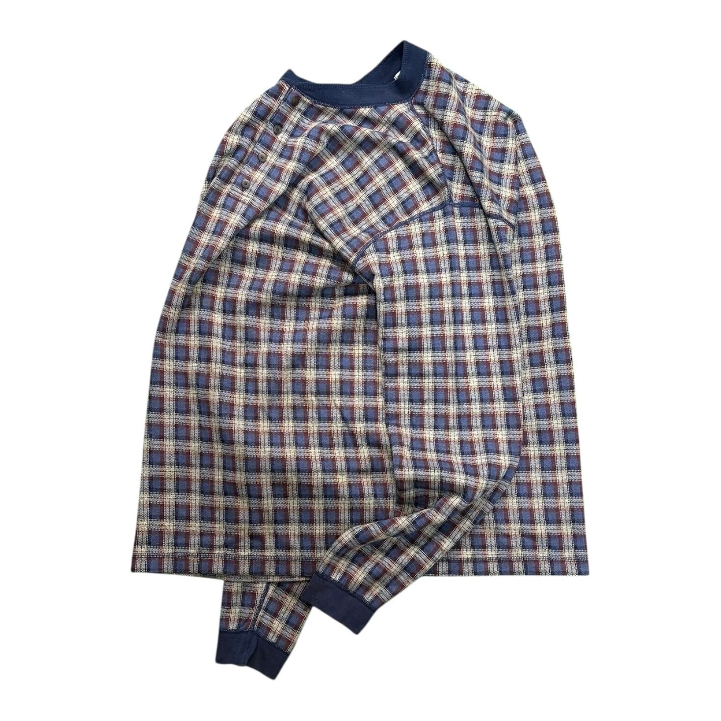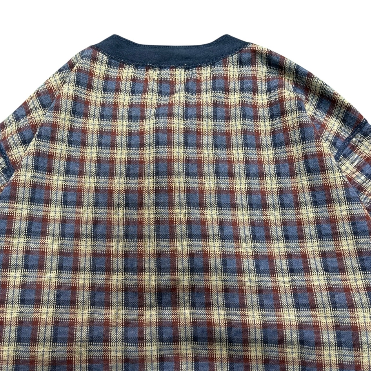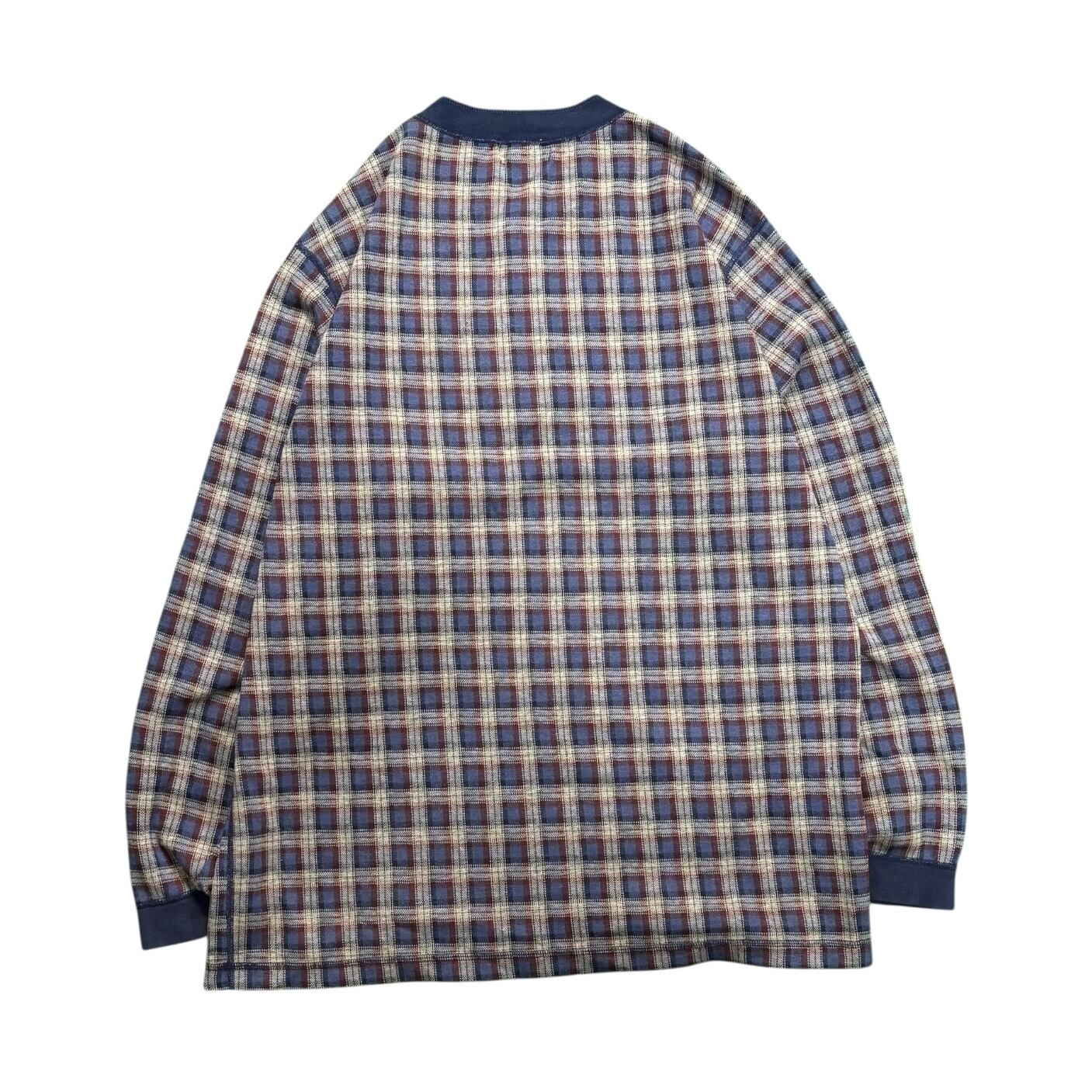 90年代らしい空気感をしっかりまとった、L.L.BEANのヘンリーネックロングスリーブ。チェック柄という王道の要素に、ヘンリーネックという少し外したディテールを組み合わせているのが、この服の一番の魅力です。シャツでもカットソーでもない、絶妙に中間的な立ち位置。