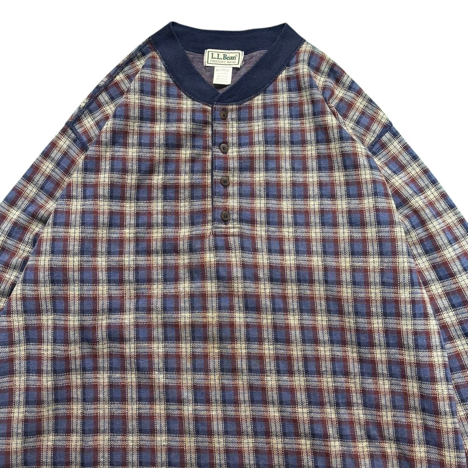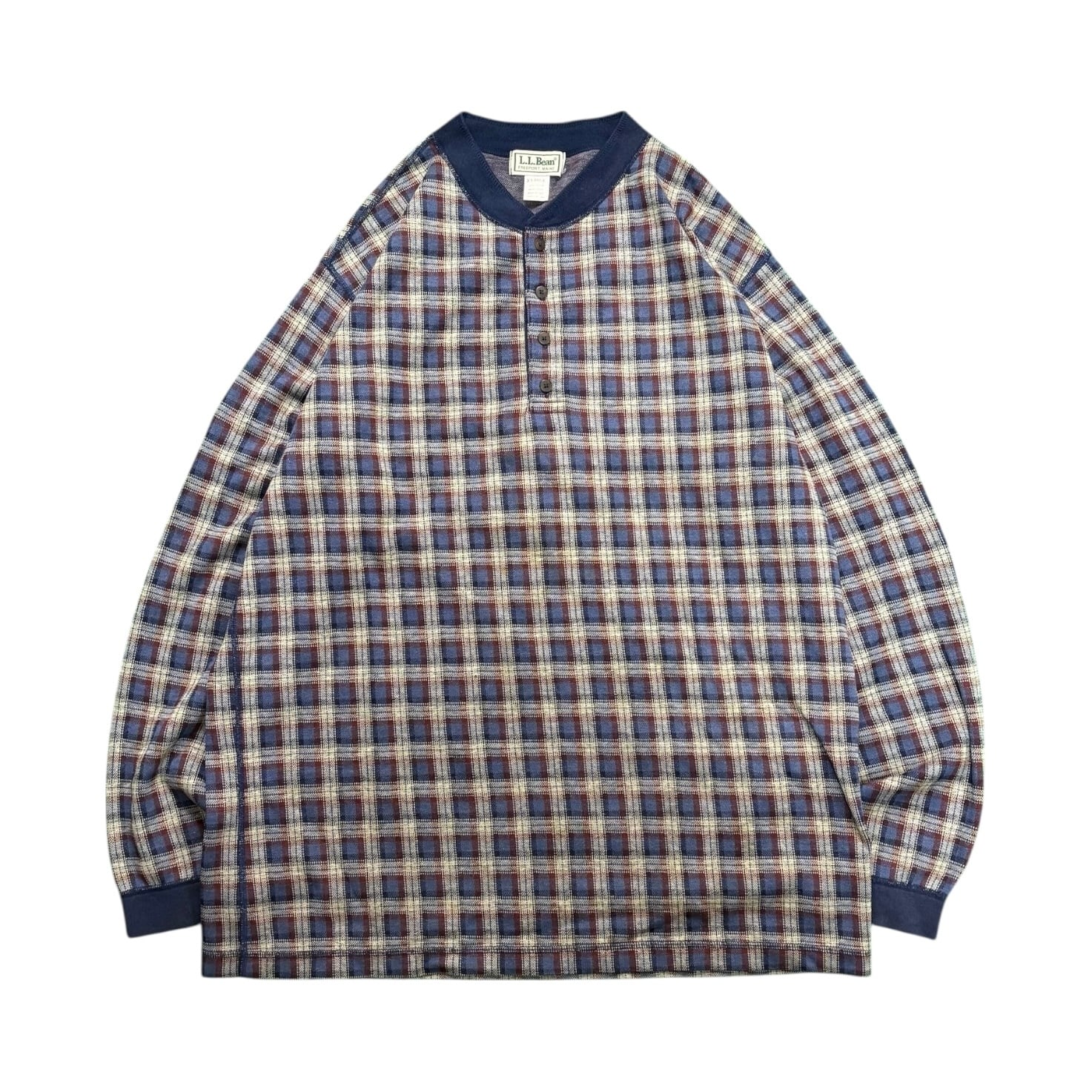 90s "L.L.BEAN" Plaid Pattern Henry Neck Long Sleeve Shirt - Made in USA