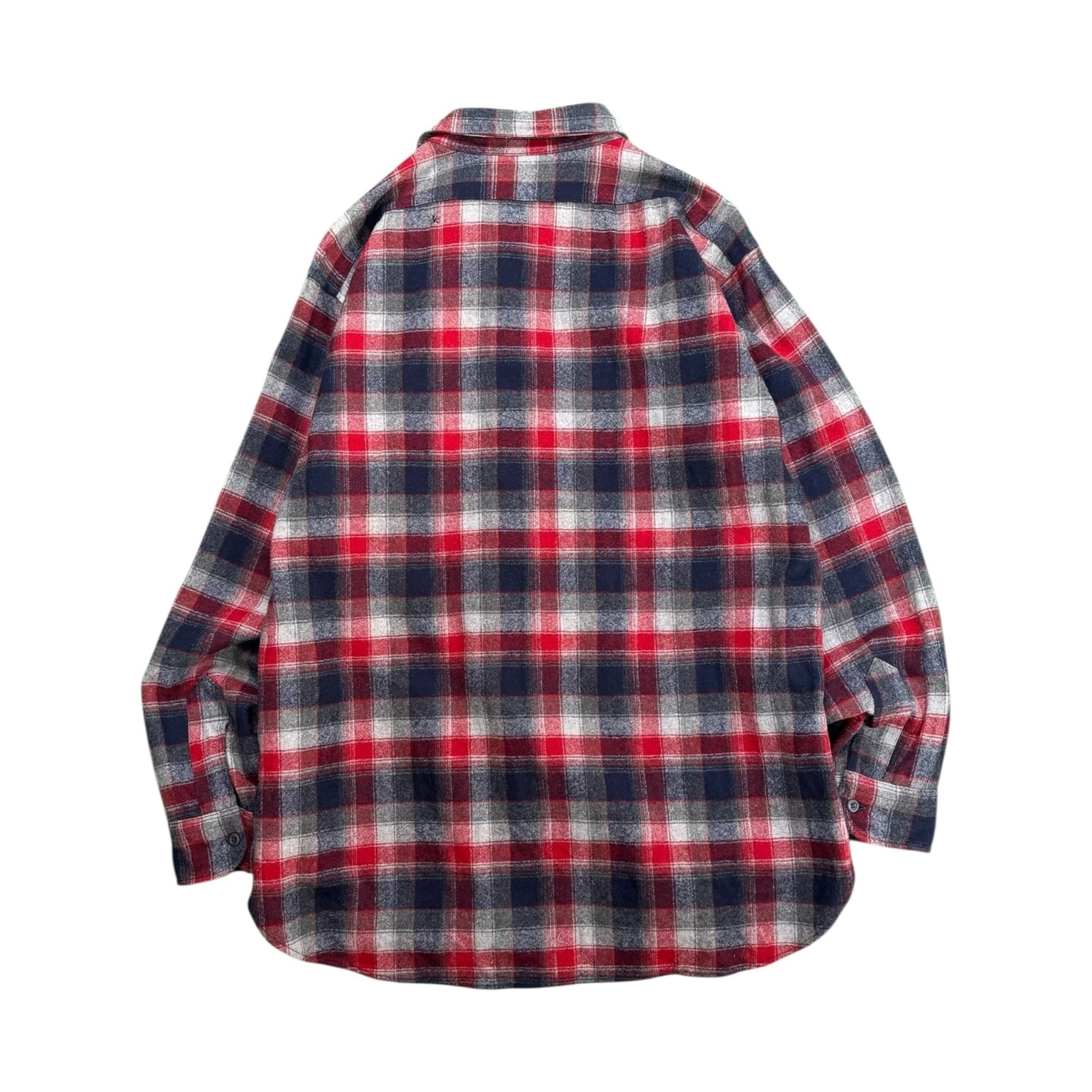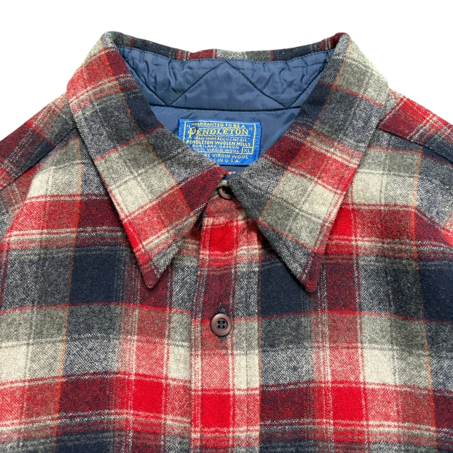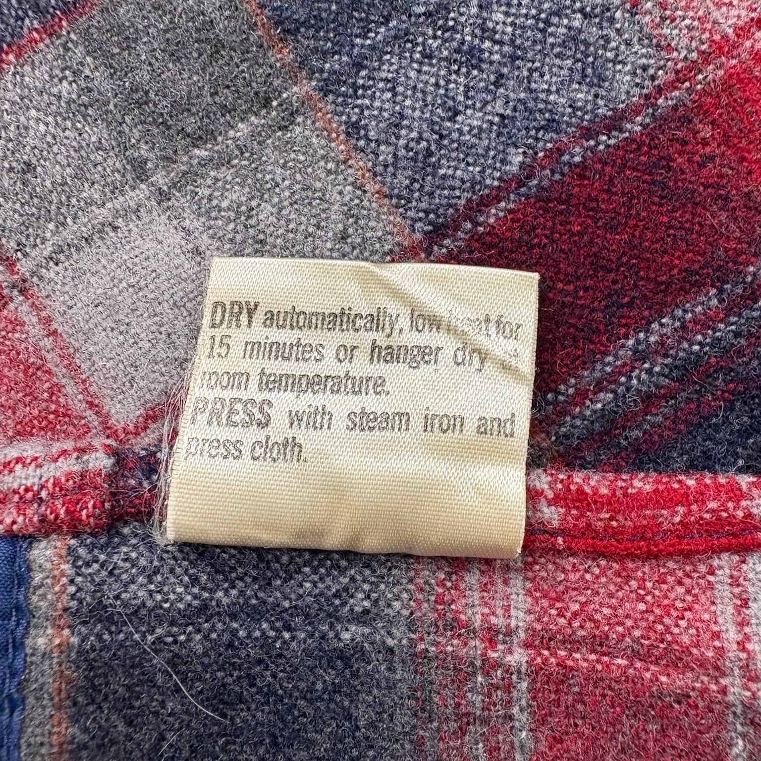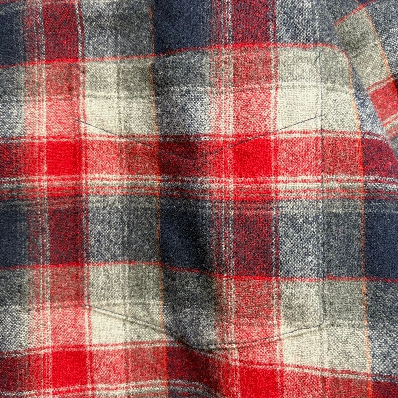 70年代ペンドルトンらしい、クラシックでいて力のある赤チェックのウールシャツ。まず何より惹かれるのはシルエットで、身幅はしっかり広く取られているのに、着丈が長すぎない。今の感覚で着てもバランスが非常によく、「あ、これだ」と思わせる個体です。正直、この条件を満たすペンドルトンは年々見つかりにくくなっています。
